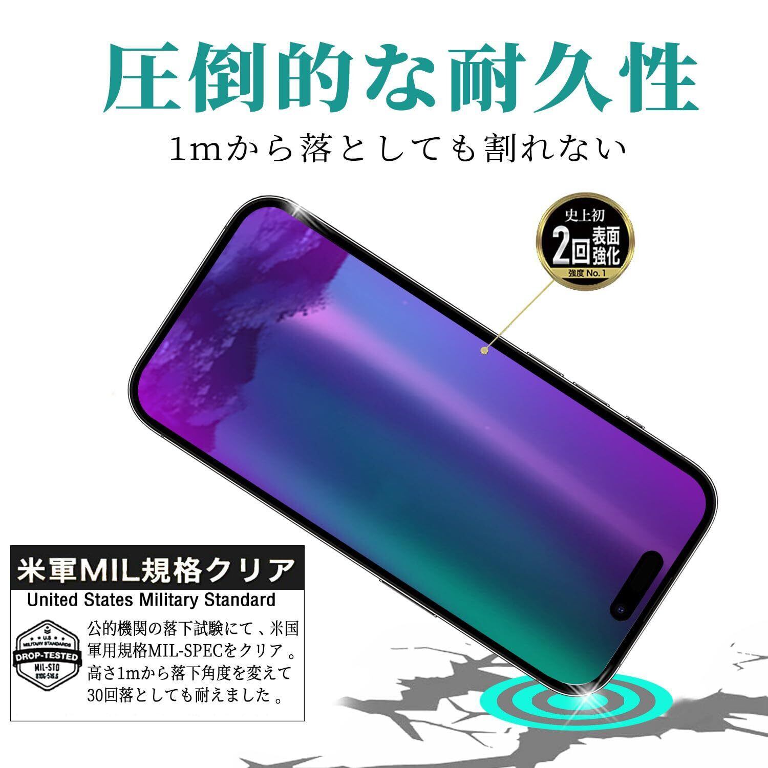 『日本製素材旭硝子製』IMAFUのガラスフィルム、9H硬度、ハードコーティング技術により外部からの衝撃をフィルムが吸収し、画面へのダメージを最低限まで抑えました。特殊な飛散防止設計により、万一割れてしまった際にもガラス片が飛散することなく、高い安全性を実現しています。