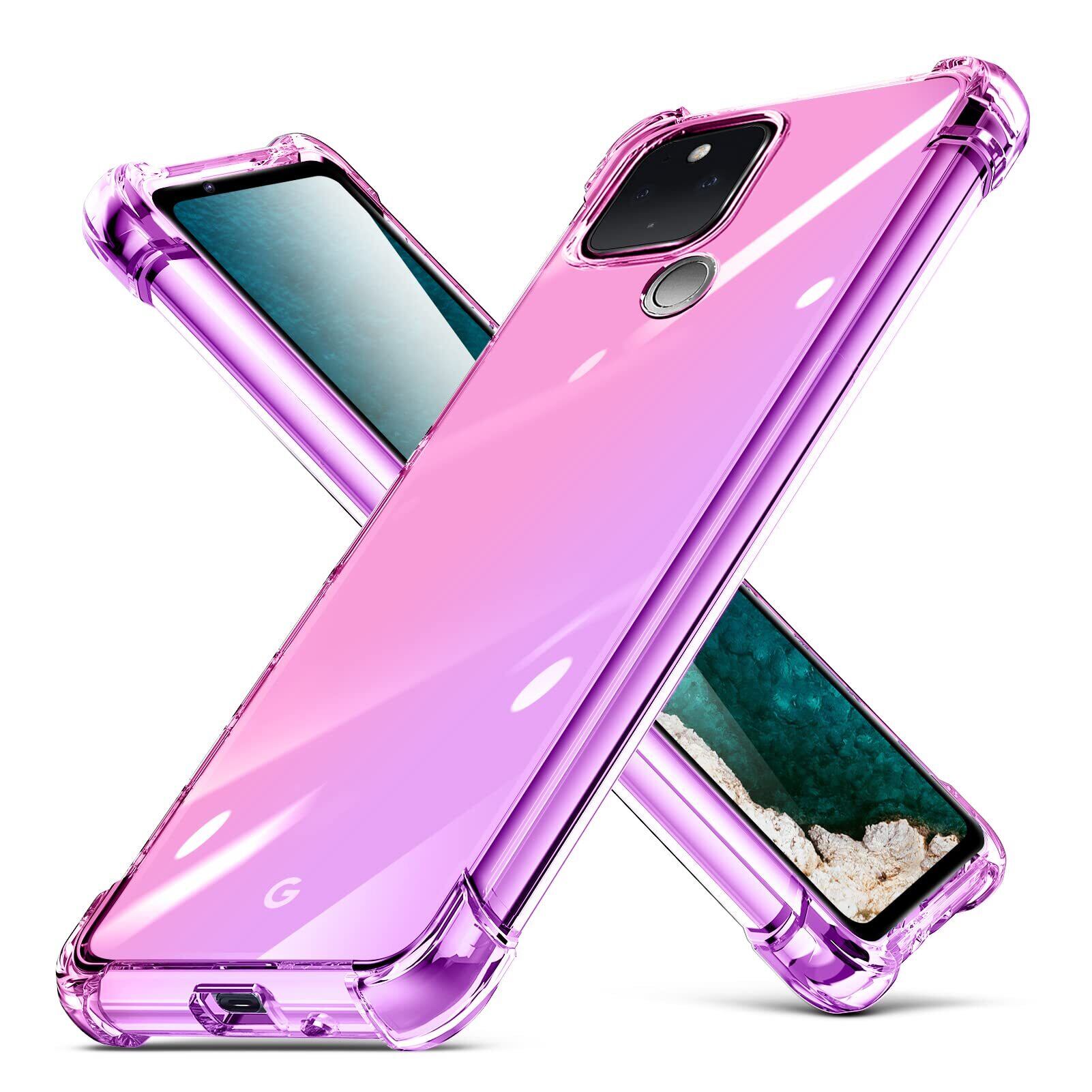 Google Pixel 4a 5G ケース tpu 耐衝撃 クリア透明 スリム 薄型 シリコン 指紋防止 米軍MIL規格取得 Pixel 4a 5g カバー 衝撃吸収 滑り止め カメラ保護 携帯カバー ワイヤレス 充電対応 おしゃれ 黄変防止 防塵 携帯カバー ピンク+紫D543-pixel 4a 5g-04
