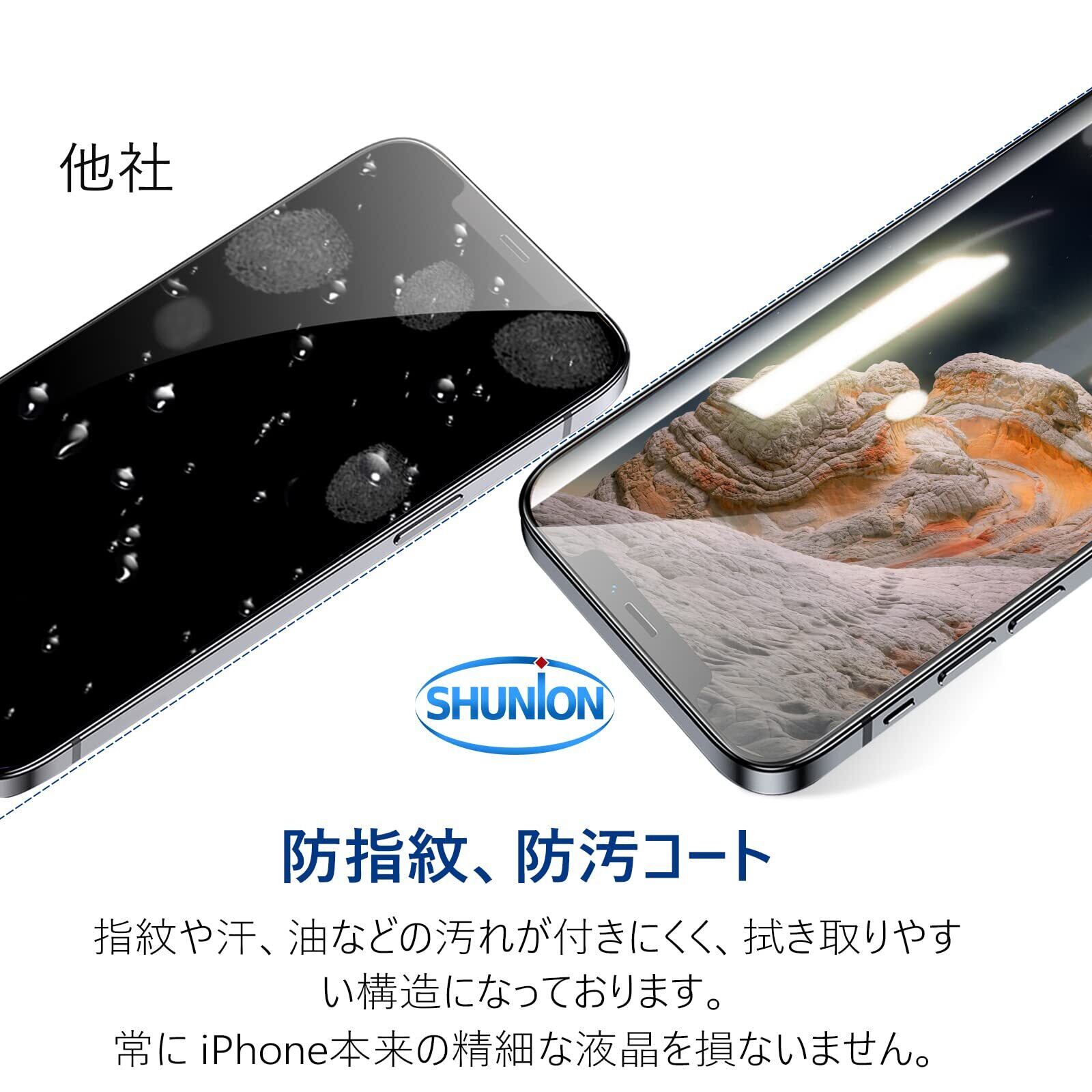 【指紋防止・強力吸着タイプ、高感度タッチ】 SHUNIONのアイフォン12pro max 保護フィルムには撥油コーティングが施されており、指紋や汚れなどに強くなめらかな操作感を実現、付着した汚れなどは簡単に拭きとれます。高品質な専用接着剤を採用し、どんな場合でも脱落の心配はありません、感度も落ちません、快適な操作感を実現します。