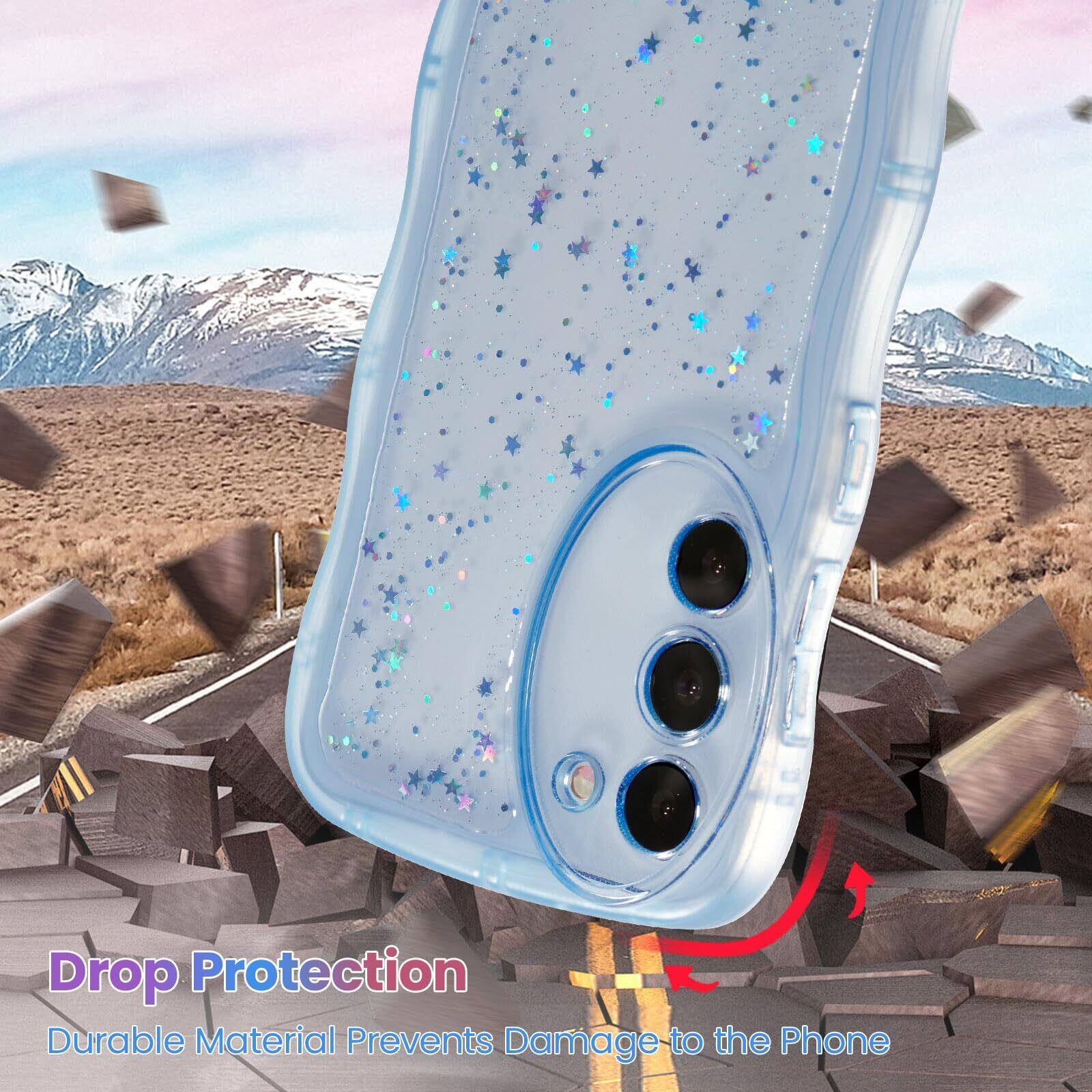 QLTYPRI Galaxy S23 ケース クリア TPU カバー ウェーブ おしゃれ 韓国 可愛い ウェーブ グリッター 透明 薄型 軽量 耐衝撃 滑り止め (SC-51D / SCG19) スマホケース ワイヤレス充電対応 ストラップホール付き ギャラクシーS23 ケース 6.1インチ 対応 - ブルー