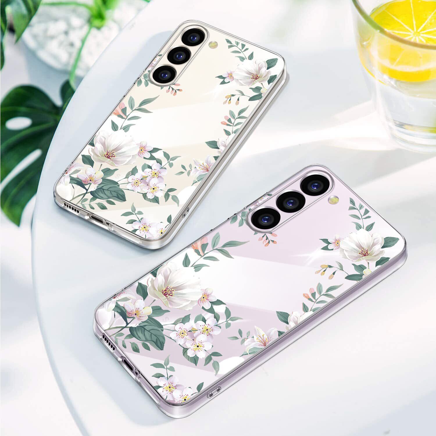 Galaxy S23 ケース SC-51D SCG19 クリア 花柄 GalaxyS23 スマホケース 透明 ソフト tpu ギャラクシーS23 カバー 可愛い 薄型 花 ストラップホール付き 軽量 ほおのき ホワイト 白い