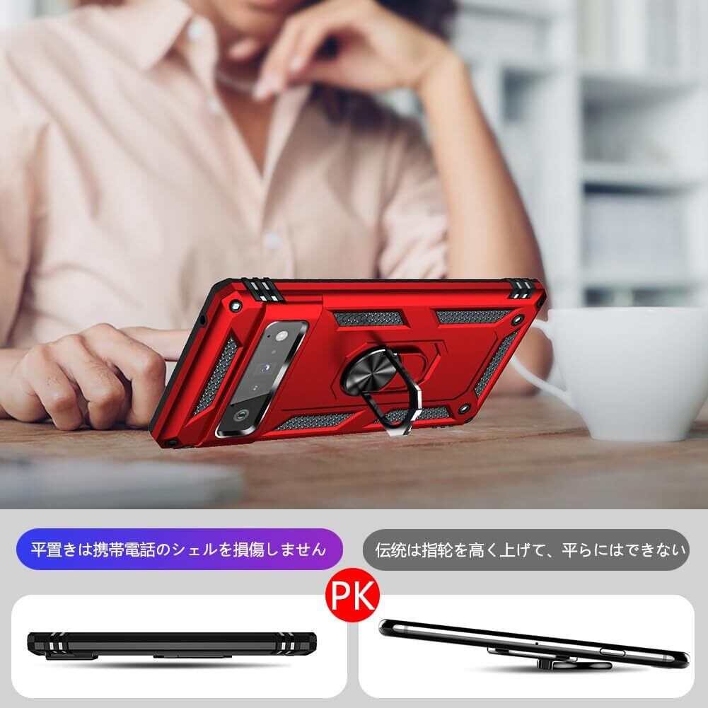 【WYEPXOL】Google Pixel 6A ケース リング付き対応 落下衝撃吸収 TPU PC 米軍MIL規格 二重構造 スタンド機能 スマホケース グーグル ピクセル 6a ケース 耐衝撃 車載ホルダー対応 軽量 擦り傷防止 取り出し易い 落下防止 携帯カバー 赤 ZW57-48