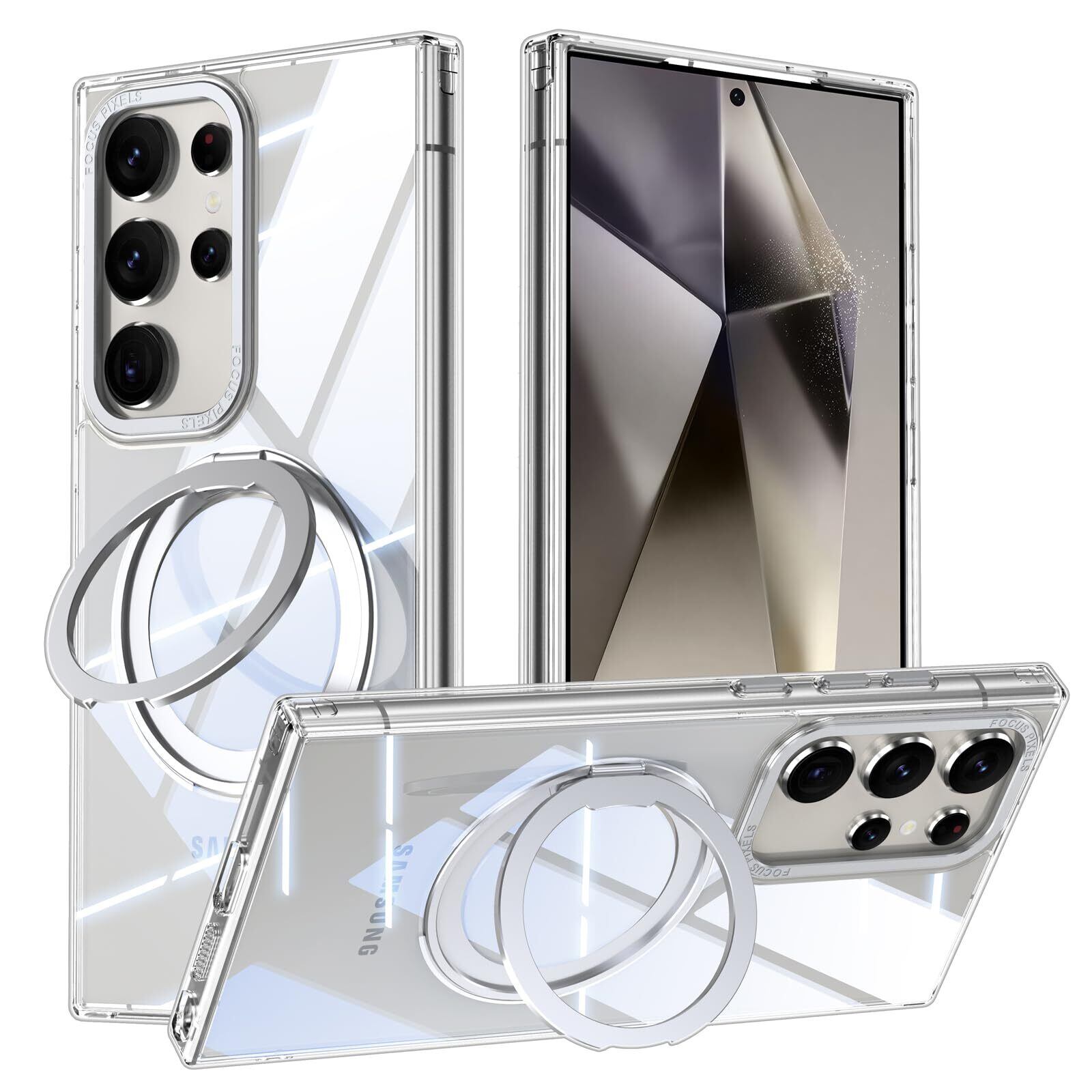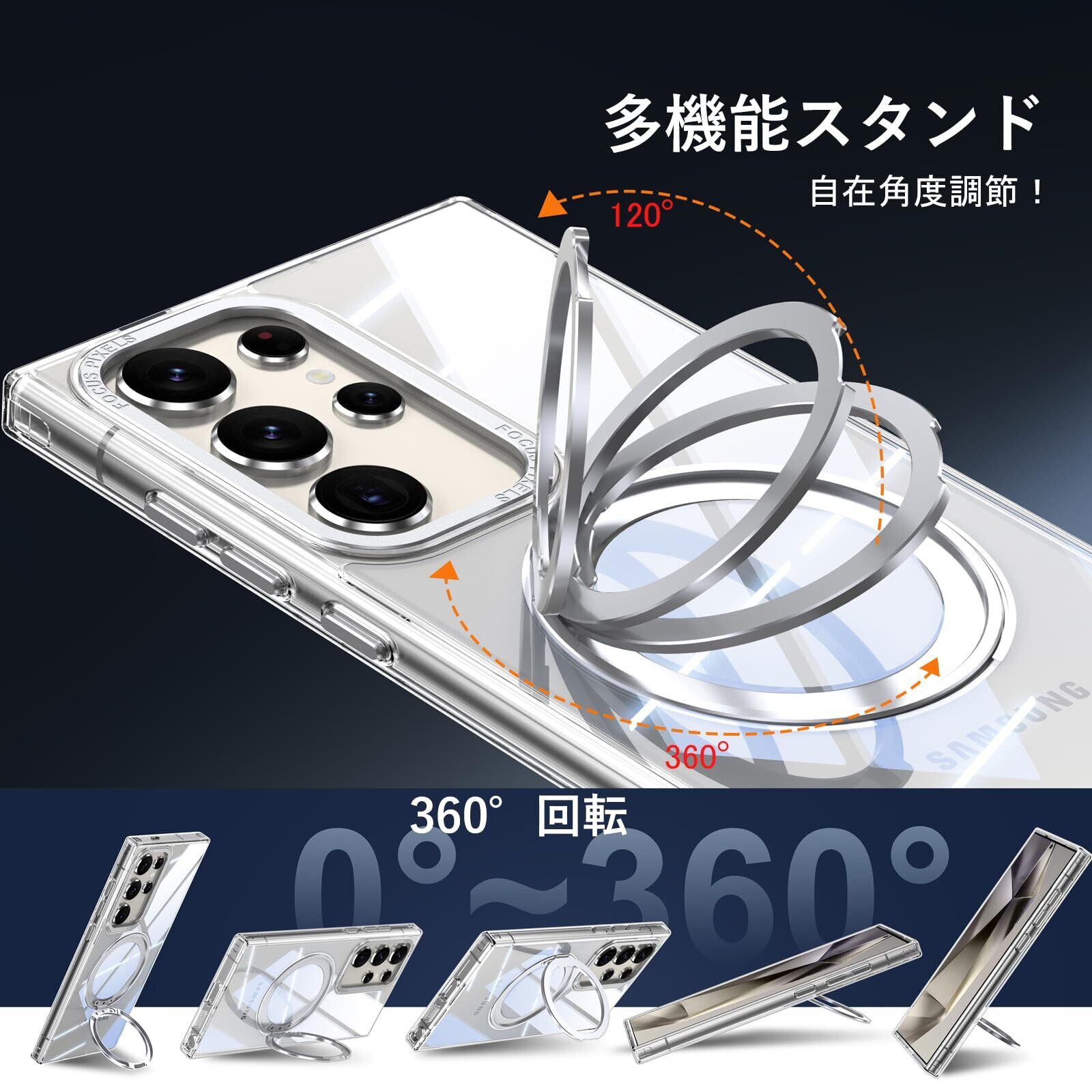 Samsung Galaxy S23 Ultra 用 ケース Magsafe対応 ギャラクシーS23ウルトラ / docomo SC-52D / au SCG20 カバー 360°回転スタンド Uovon スマホケース 携帯ケース ワイヤレス充電 車載ホルダー 対応 ストラップ穴付き 半透明 指紋防止 黄变防止 ・ クリア