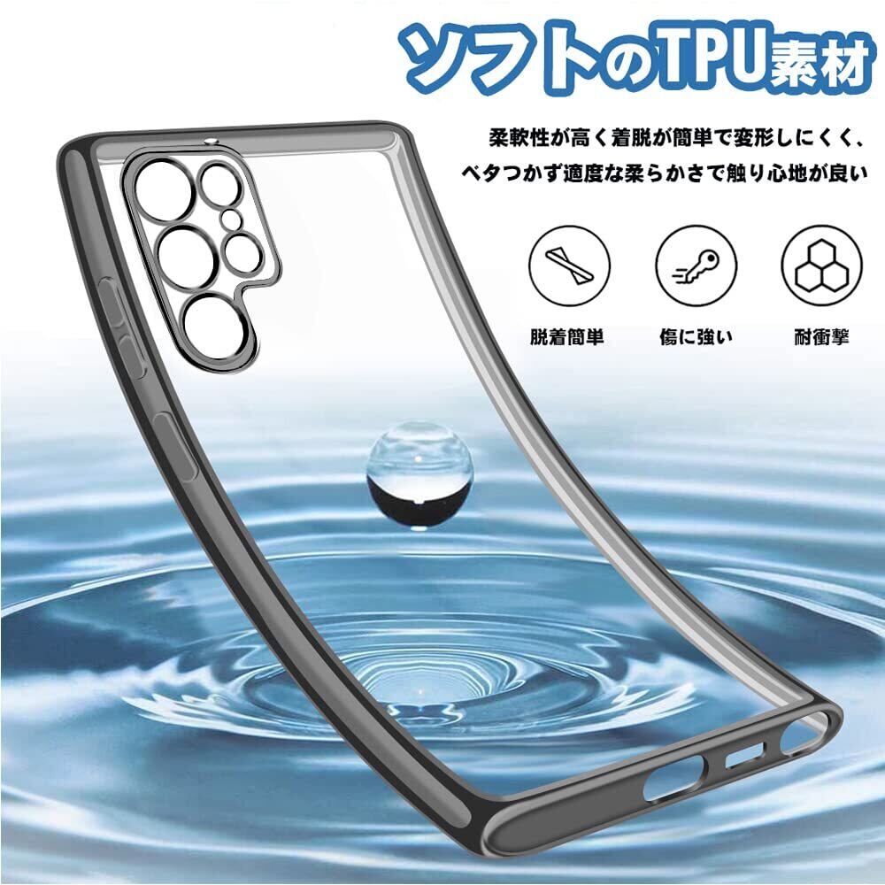 【魅力な透明感】透明な背面はGalaxy S23 Ultraの本来の美しさを示し、フレームのメッキはよりおしゃれに感じます。高品質のTPUは、優れたTPU材料を採用し、柔軟に変形しない、手触りを防ぎ、指紋の汗を防ぎ、触感が良好である。