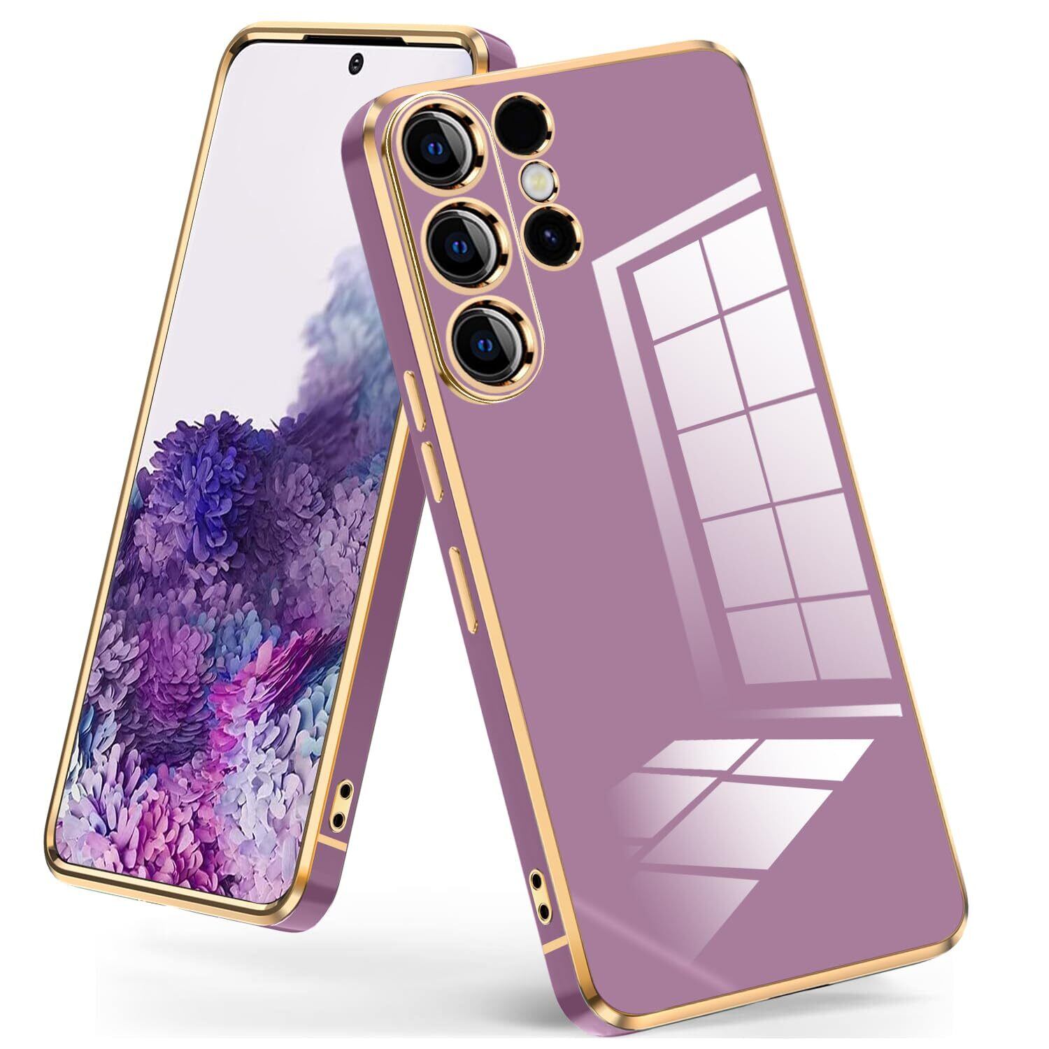 Galaxy S23 Ultra ケース 耐衝撃 SC-52D SCG20 カバー TPU 薄型 クリア 軽量 ワイヤレス充電対応 メッキ加工 ストラップホール付き ギャラクシー S23 ウルトラ スマホケース 可愛い ソフト 黄変なし おしゃれ 耐久 人気 携帯ケース 紫 JMJP4-18