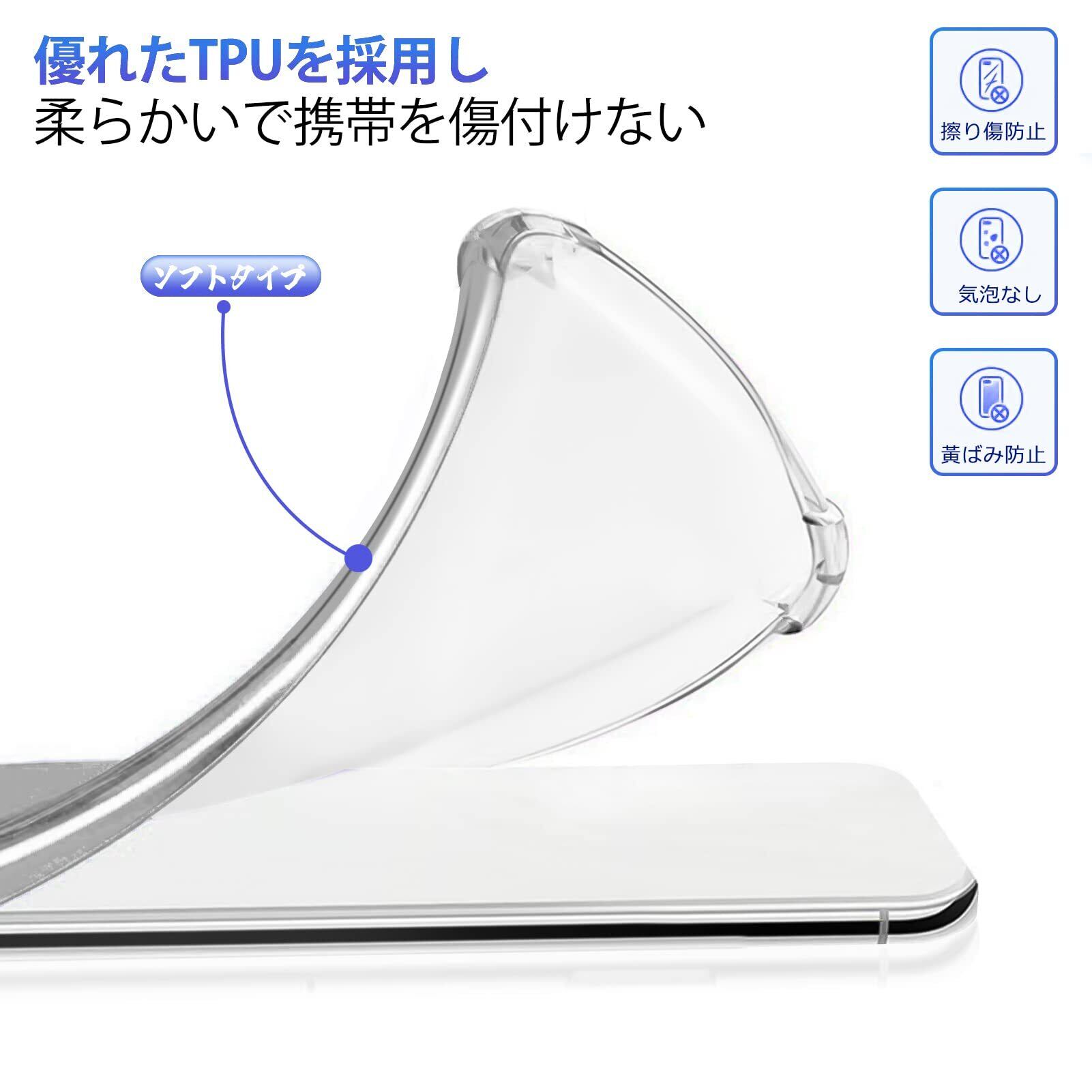 【耐衝撃・耐用性あり】高品質TPU素材で作られているため丈夫で柔軟性があり、着脱しても傷付けにくいし、擦り傷有効的防止し、ソフトな素材感と耐久性が特徴あり、落下時の衝撃を軽減する設計。埃がつきにくい、透明性が高く、軽く拭いて光沢を復元させます。また、液晶画面とカメラレンズより0.3mm高くなり、そして背面に約0.3㎜の突起があり、日常の使用中に外部と直接触れず、360°どんな角度に置いても擦り傷無し。