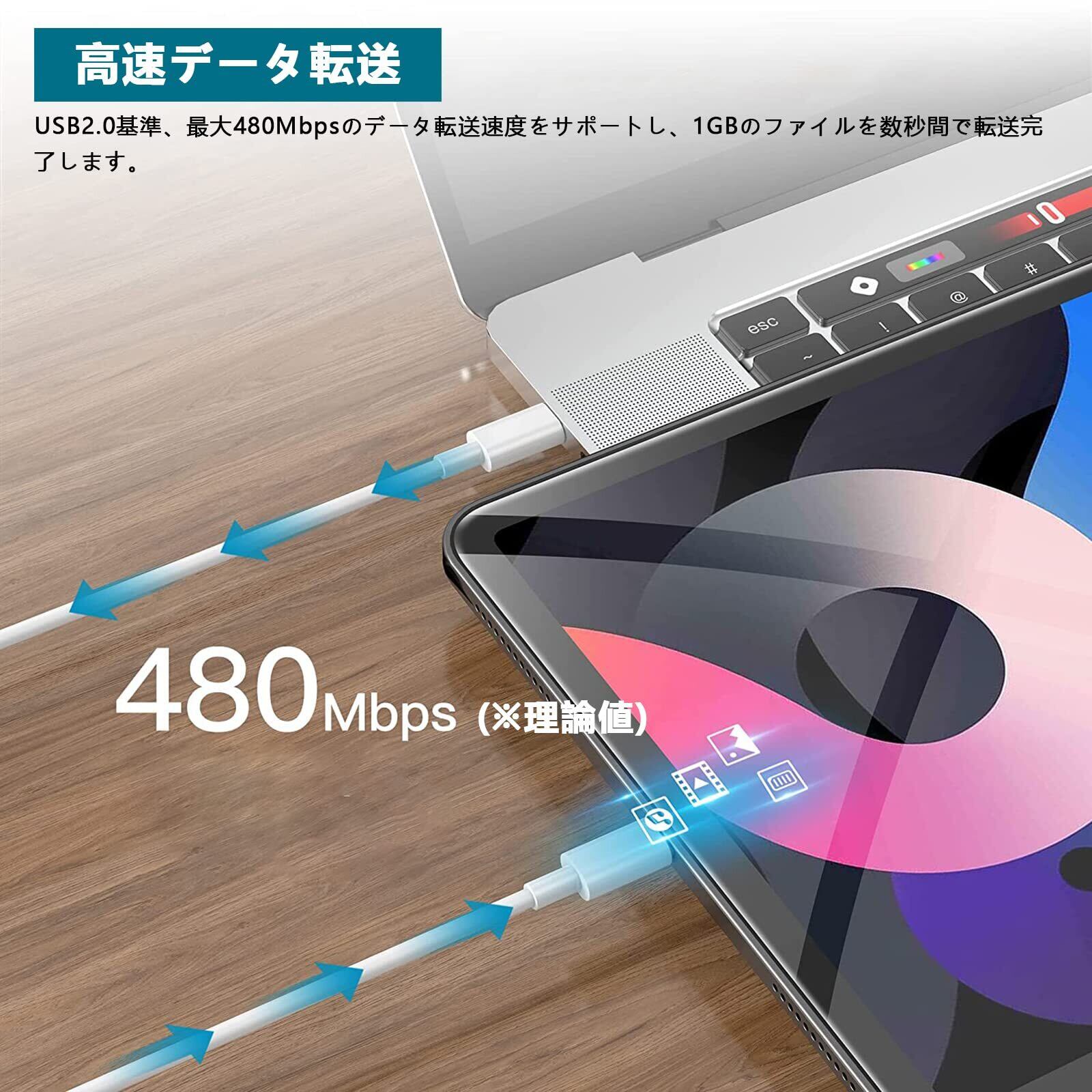 【データ転送】USB2.0基準、最大480Mbpsのデータ転送速度をサポートし、1GBのファイルを数秒間で転送完了します。▲映像出力は非対応。
