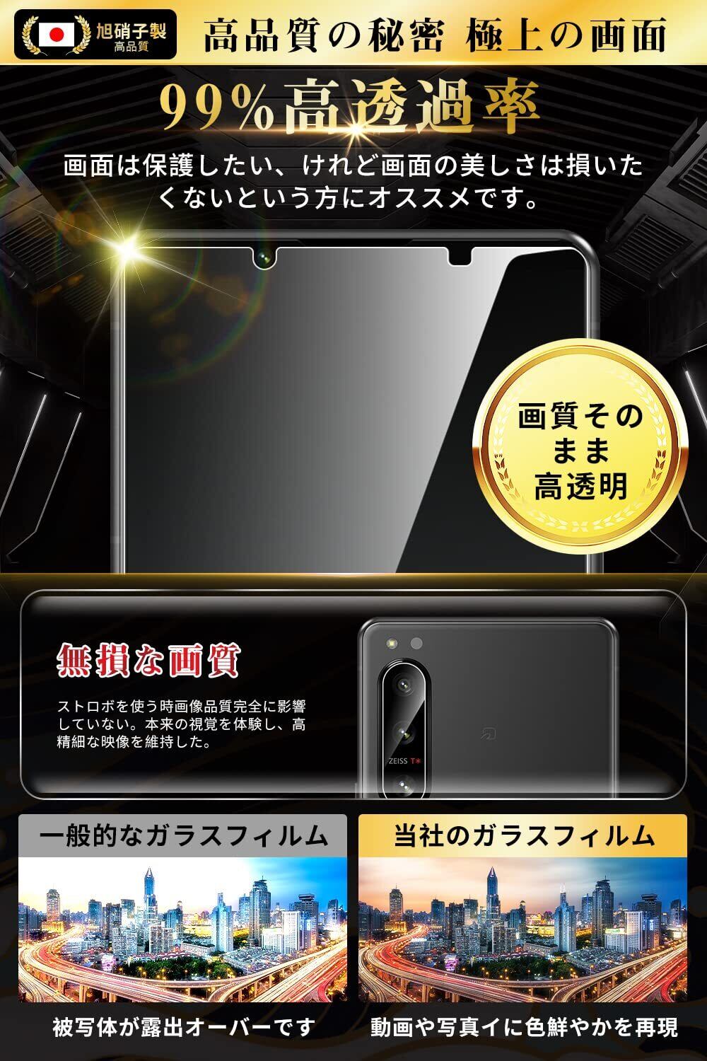 【特価商品】対応 Xperia 5 IV ガラスフィルム (2枚) + Xperia 5 IV カメラフィルム(2枚)【日本旭硝子製】SO-54C/SOG09 フィルム 硬度9H 耐衝撃 高透過率 自動吸着 気泡 飛散防止 撥水撥油 xperia5iv 保護フィルム