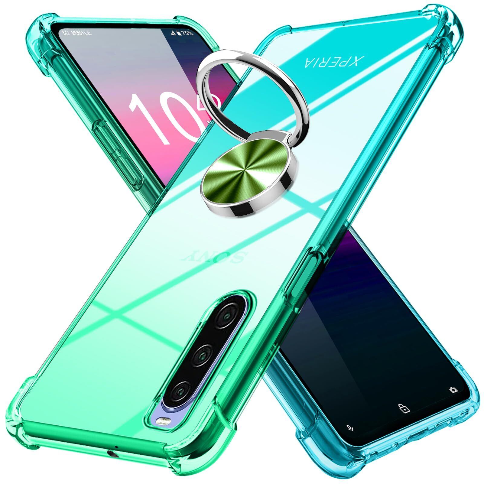 Xperia 10 V ケース リング付き クリア 薄型 グラデーション色 ケース SO-52D SOG11 ケース 軽量 tpu 耐衝撃 スマホケース 透明 米軍MIL規格取得 おしゃれ 黄変防止防塵一体型 人気 車載ホルダー エクスペリア 10 V 携帯カバー グラデーション緑 MD-SXZH-034-01