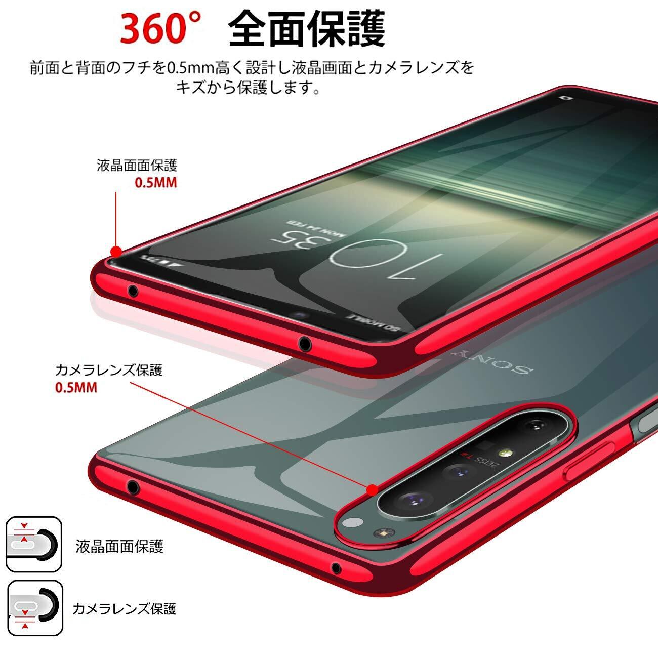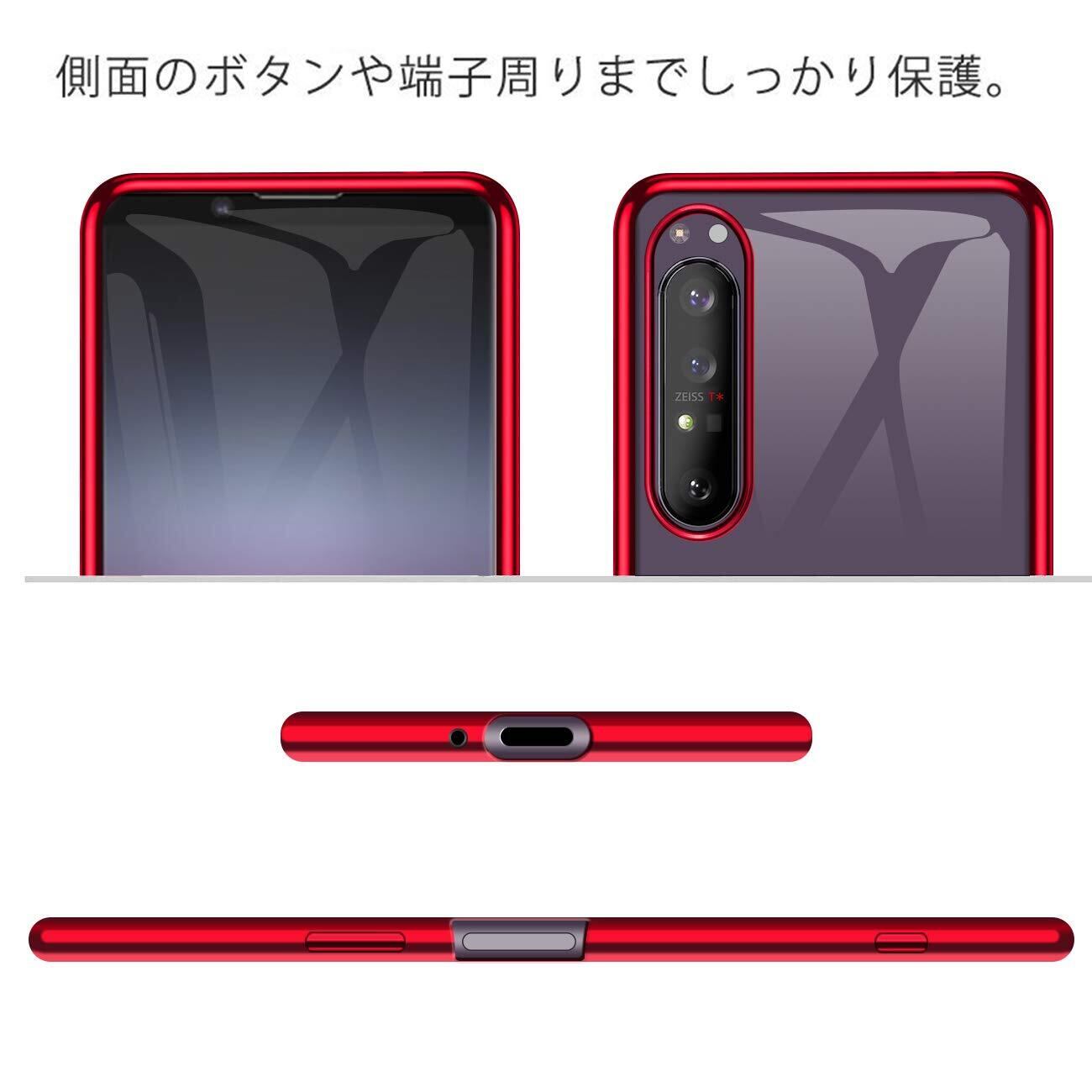 Xperia 1 II ケース SO-51A カバー クリア 透明 TPU 耐衝撃 薄型 シリコン スリム 擦り傷防止 黄変防止 メッキ加工 ストラップホール付き Xperia1 II au SOG01 カバー(レッド)