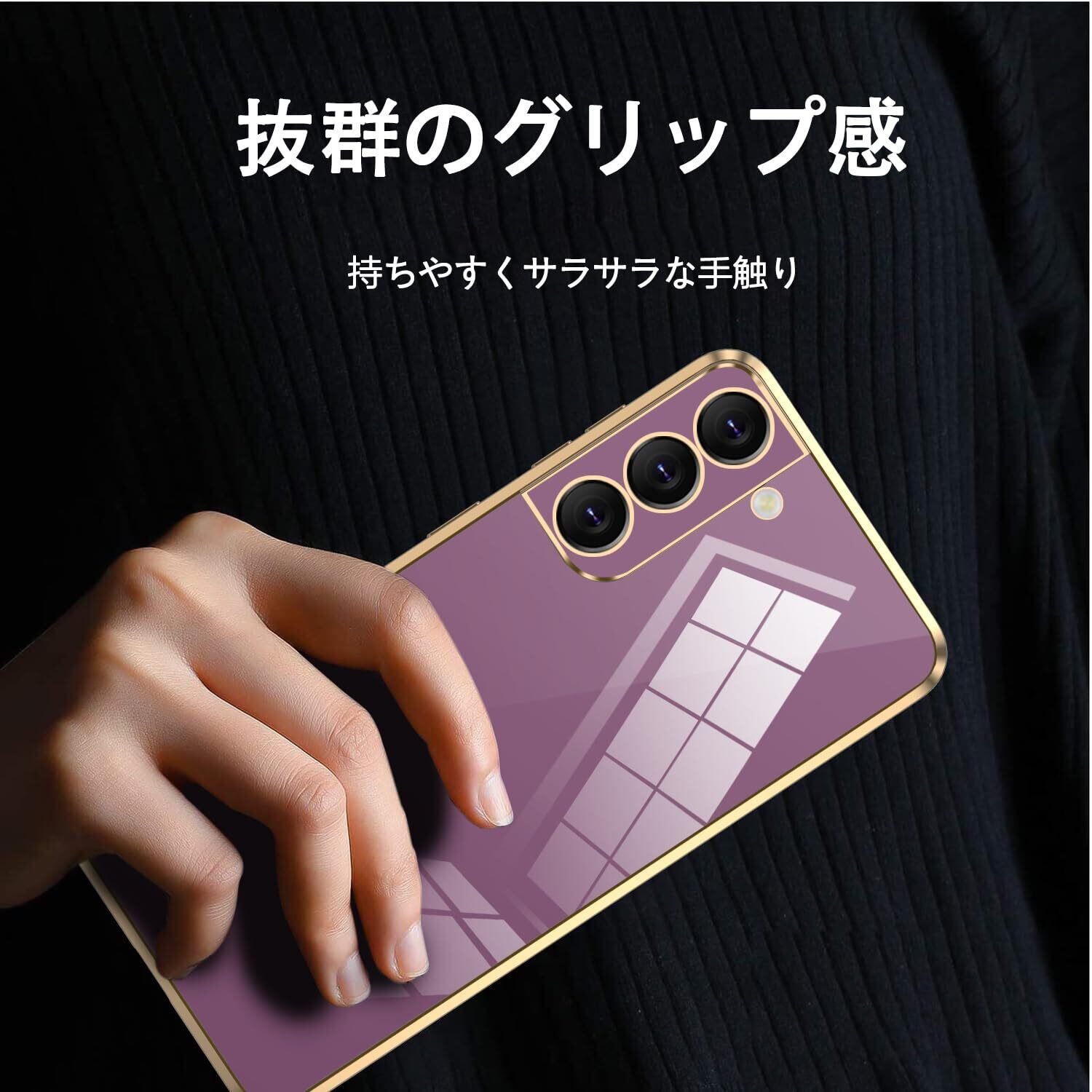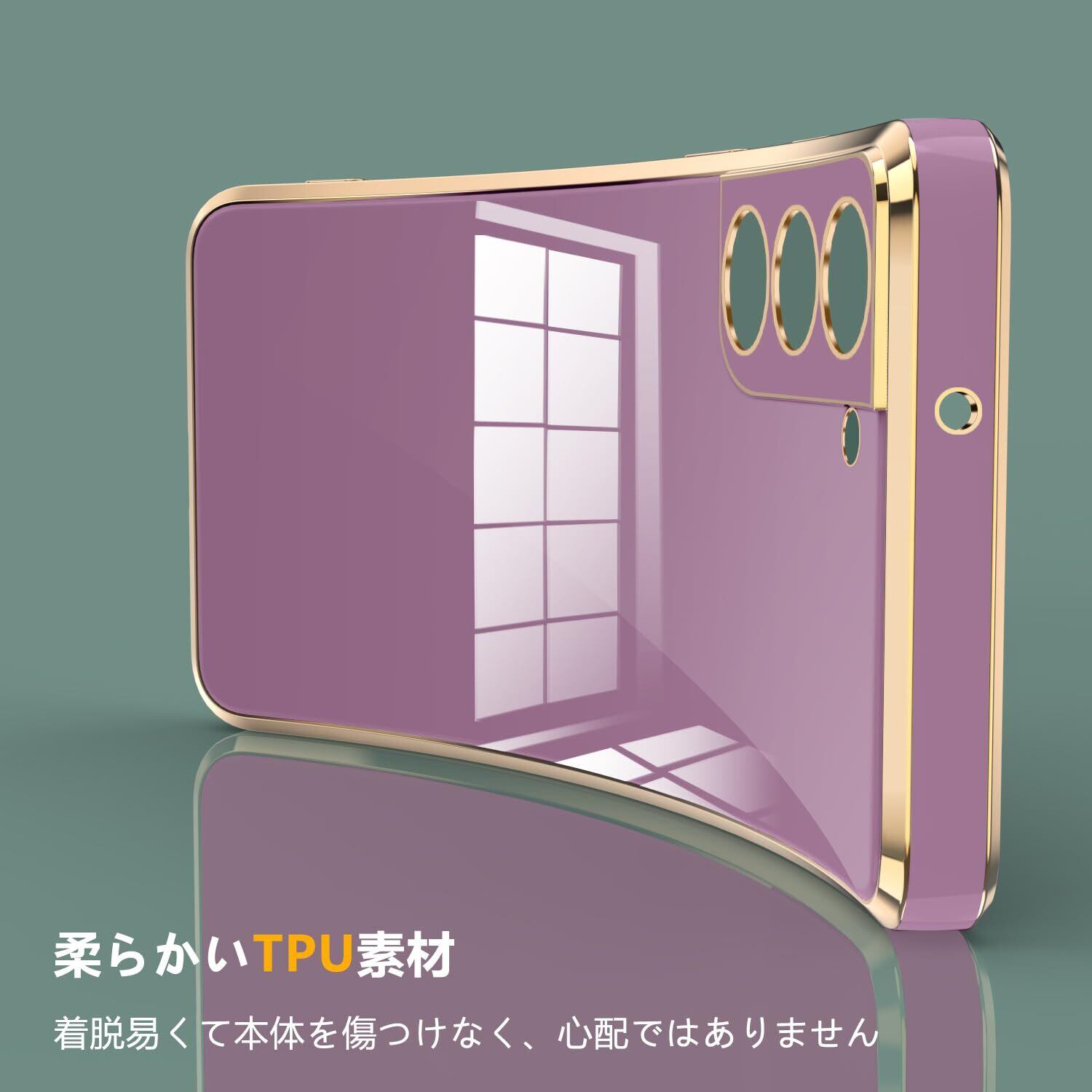 Galaxy S22 5G 用ケース クリア 耐衝撃 TPU ケース レンズ保護 ソフトケース 透明 メッキ加工 ワイヤレス充電 ギャラクシーS22 用カバー ラップホール付き 薄型 軽量 メッキ枠 パープル/ゴールド JP2-89