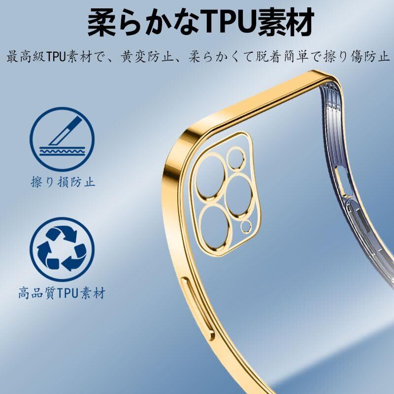 iPhone11 Pro Max ケース クリア カメラ保護 いphone11 Pro Max スマホケース 薄型 TPU 軽量 変形防止 人気 スリム ソフト アイフォン 11 Pro Max カバー 衝撃吸収 ストラップホール付き(ゴールド)