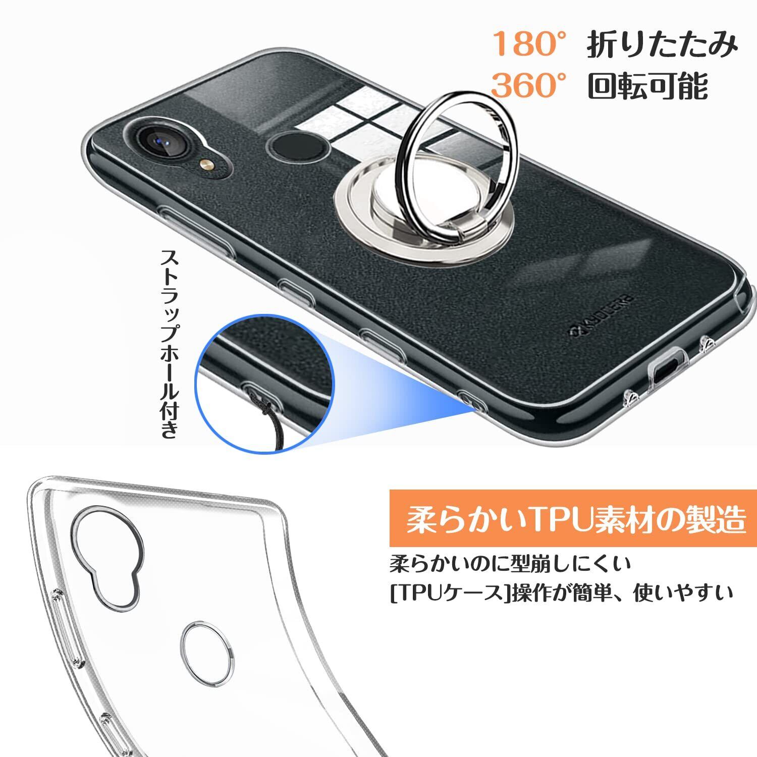 Dunluluoyin Digno SX3 KYG02 ケース クリア リング付き シリコン 耐衝撃 TPU 京セラ Digno SX3 KYG02 カバー 透明 耐久 軽量 薄型 黄変防止 スタンド機能 車載ホルダー 360°回転 擦り傷防止 衝撃吸収 保護カバー
