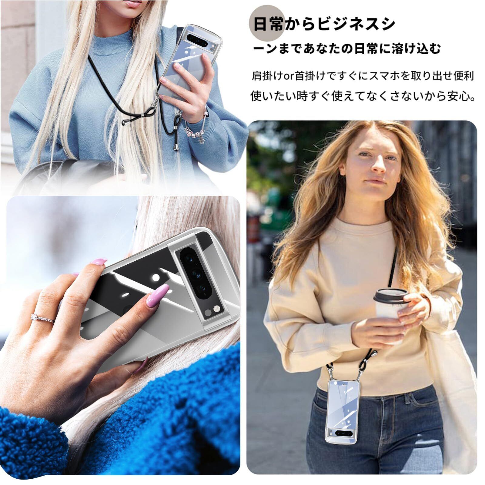 【高品質な素材】 澄み渡り透明な背面は携帯電話の本来の美しさを示し、高品質のポリマーによりケースが長時間透明度を維持し、黄変しにくい、長時間使用しても光沢感。ま金具は高品質のステンレス鋼でできており、耐久性が高く錆びません。柔らかいナイロンストラップで首を快適に保ち、ストレッチの長さを調整でき、取り付けが簡単、電話ケースを単独で使用できます、必要な瞬間にすぐ取り出せてとても便利。