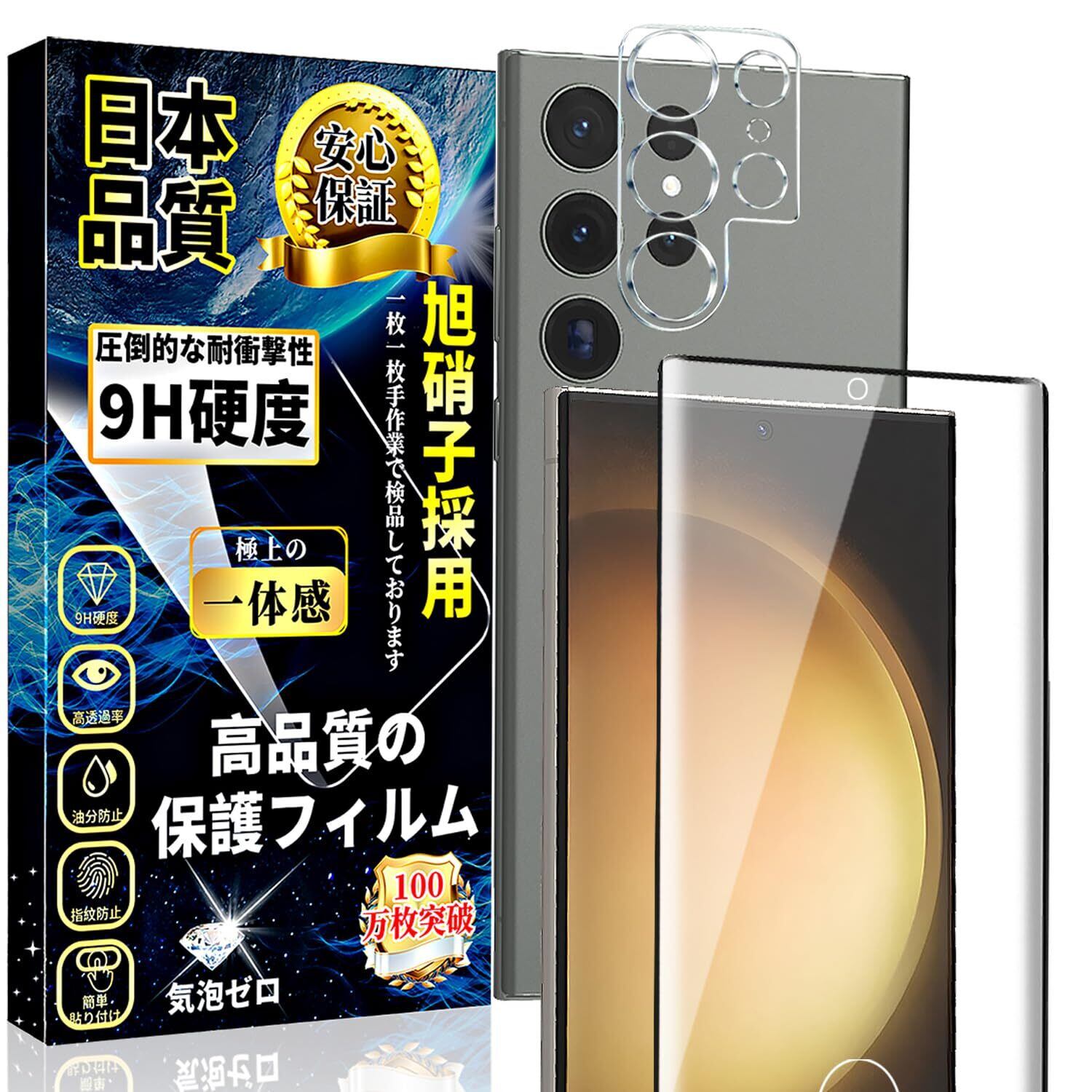 【新着商品】対応 Galaxy S23 Ultra ガラスフィルム(1枚)+GalaxyS23Ultra カメラフィルム(1枚) ギャラクシーS23 ウルトラ ふぃるむ SC-52D SCG20 強化ガラス 硬度9H 日本旭硝子製 飛散防止 気泡防止 指紋防止 貼り付け簡単 Galaxy S23 Ultra 保護フィルム+レンズフィルム