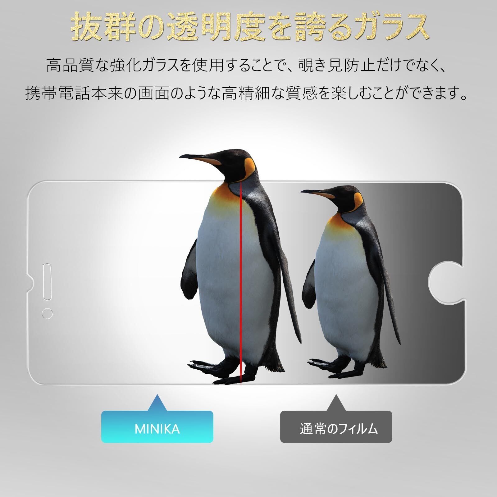 【覗き見防止、 プライバシーフィルム】 MINIKAのiPhoneSE 覗き見防止フィルム,覗き見防止技術によりを採用、視野角度が左右約28°となり、28°を超えると画面が暗くなり、プライバシーを守ります。例えば、電車やバスの中でメッセージを見ていたら、隣の人に覗かれていたという心配がなく、LINEやメール操作の際も安心です。また、本製品は斜めから見るとブラインドルーバーにより画面が真っ黒になりますが、真正面から見ると高透過率ではっきり見ることが出来ます。