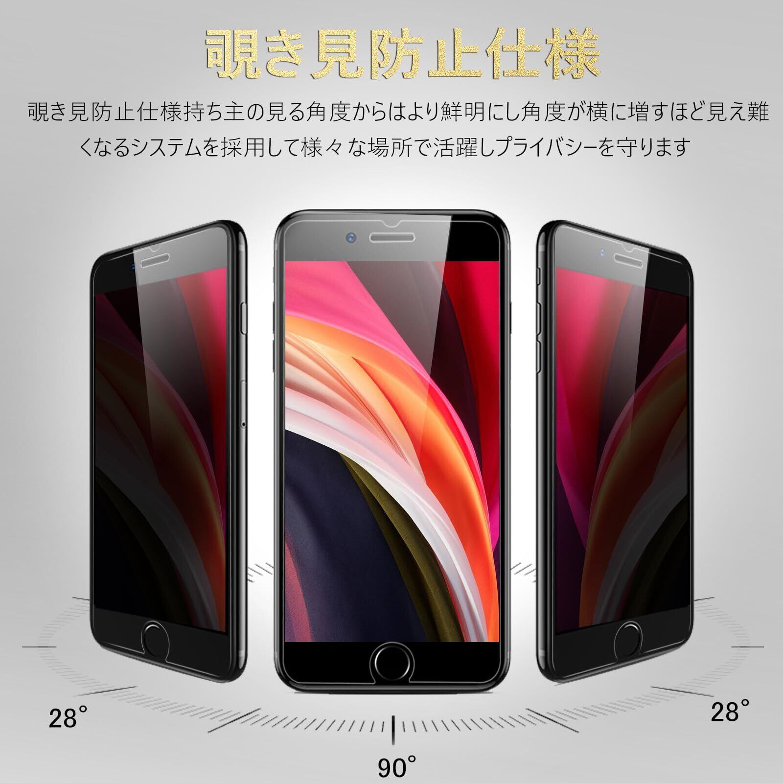 iPhoneSE第2世代 / iPhoneSE第3世代 ガラスフィルム 覗き見防止 iPhone SE2 / SE3 覗き見防止フィルム アイフォンSE 保護フィルム 覗き見 いphone せ2 / せ3 用 強化ガラス 画面保護 シート フィルター 【プライバシー/のぞき見防止/左右 見えない】 ガイド枠 付き