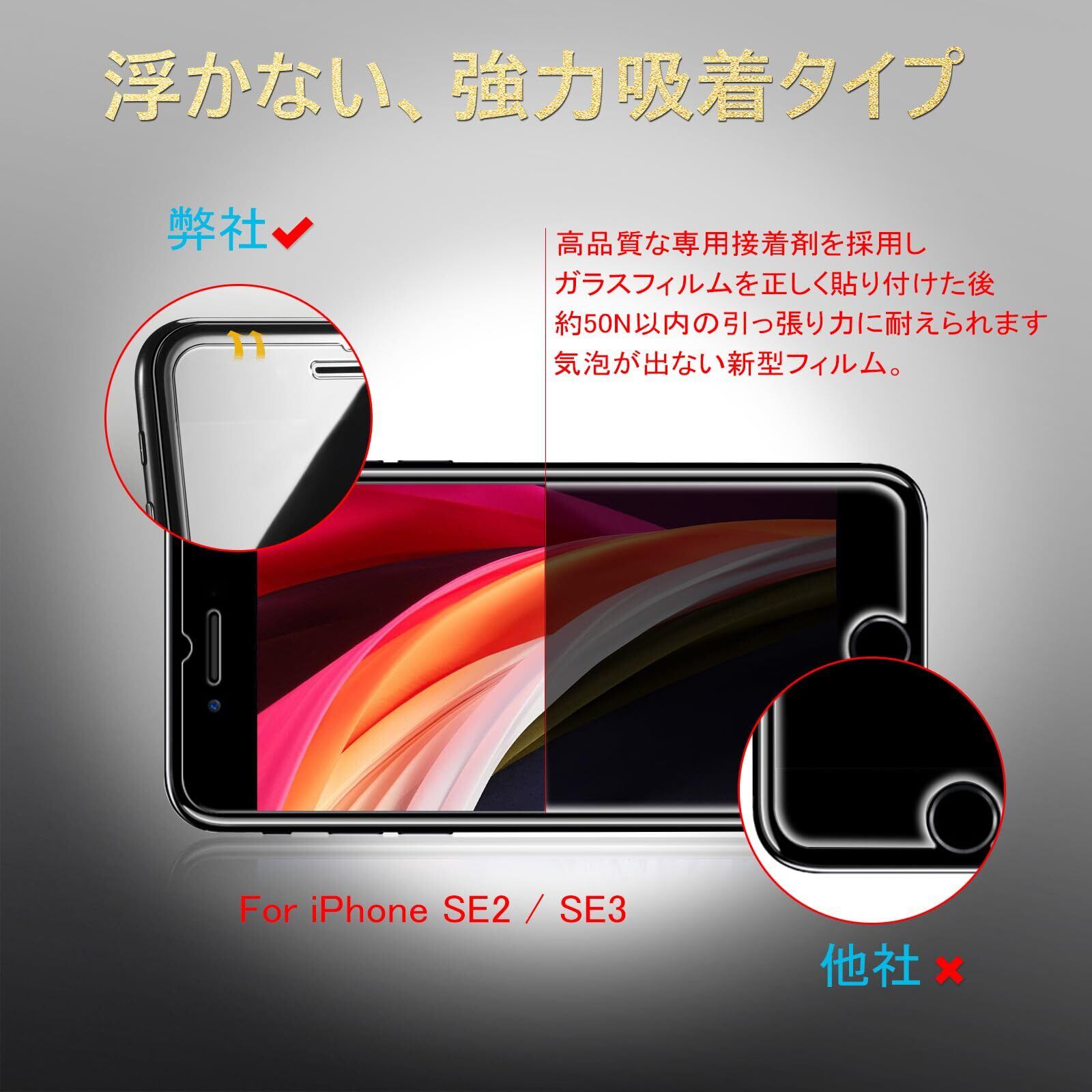 【浮かない、 強力吸着タイプ、 高感度タッチ】MINIKAのiPhoneSE2ガラス保護フィルム,高品質な専用接着剤を採用し、ガラスフィルムを正しく貼り付けた後、約15N以内の引っ張り力に耐えられます。そのため、しばらく使用した後に脱落したり、感度が低下したりする心配も必要ありません。