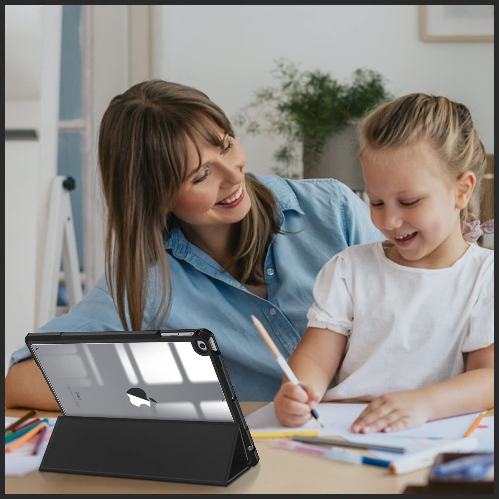 Fintie iPad 9.7 2018 2017 / Air 2 / 1 ケース 透明バックカバー Apple Pencil 収納可能 三つ折スタンド スリープ機能 軽量 薄型 傷つけ防止 PU合成レザー TPU 第6 / 5世代対応 (1ブラック)