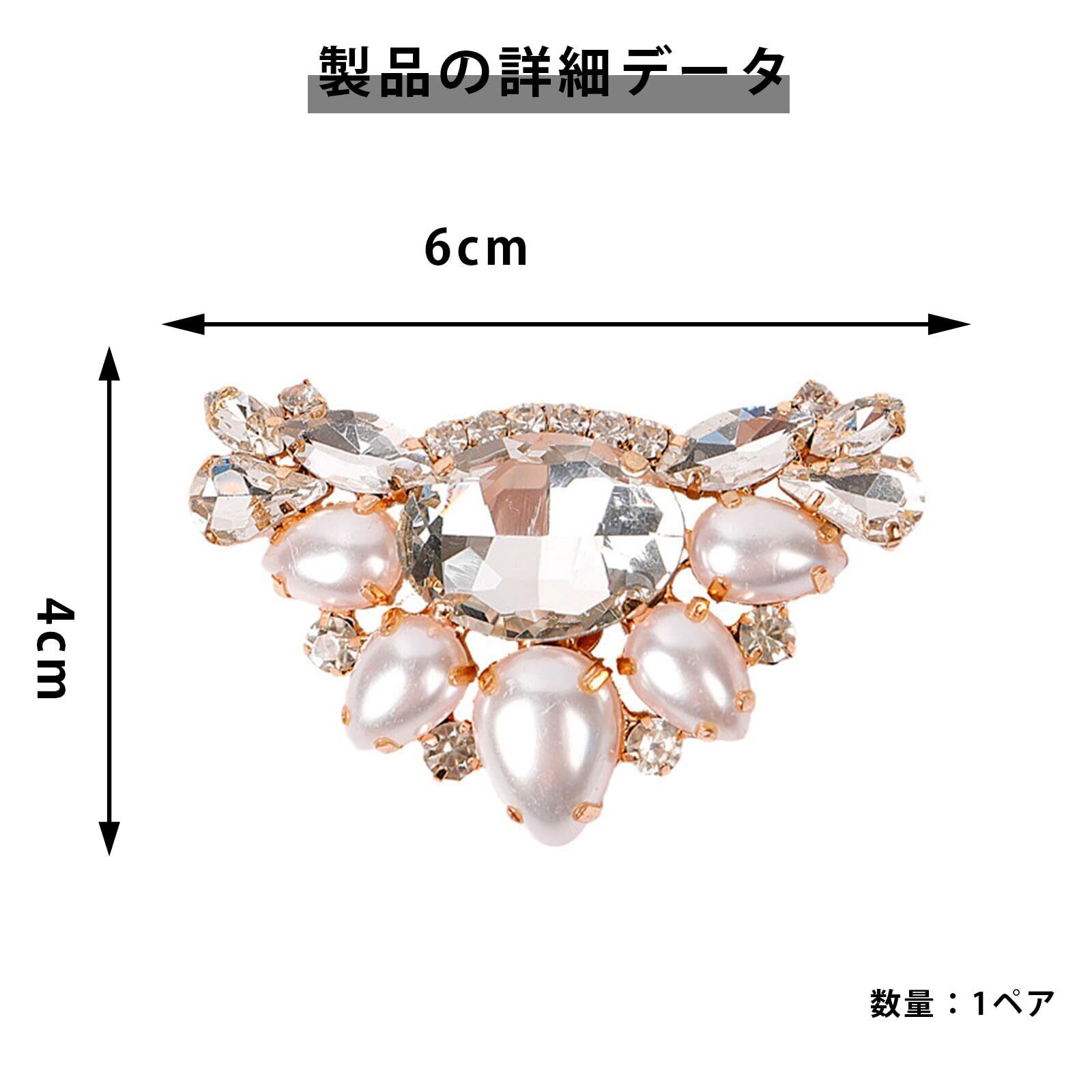 [ZHEJIA] シューズクリップ [1ペア] シューズアクセサリー パンプス 飾り パール クリスタル キラキラ おしゃれ 靴飾り 汎用性 耐久性 ワンタッチ着脱 取り外し可能 結婚式 パーティー