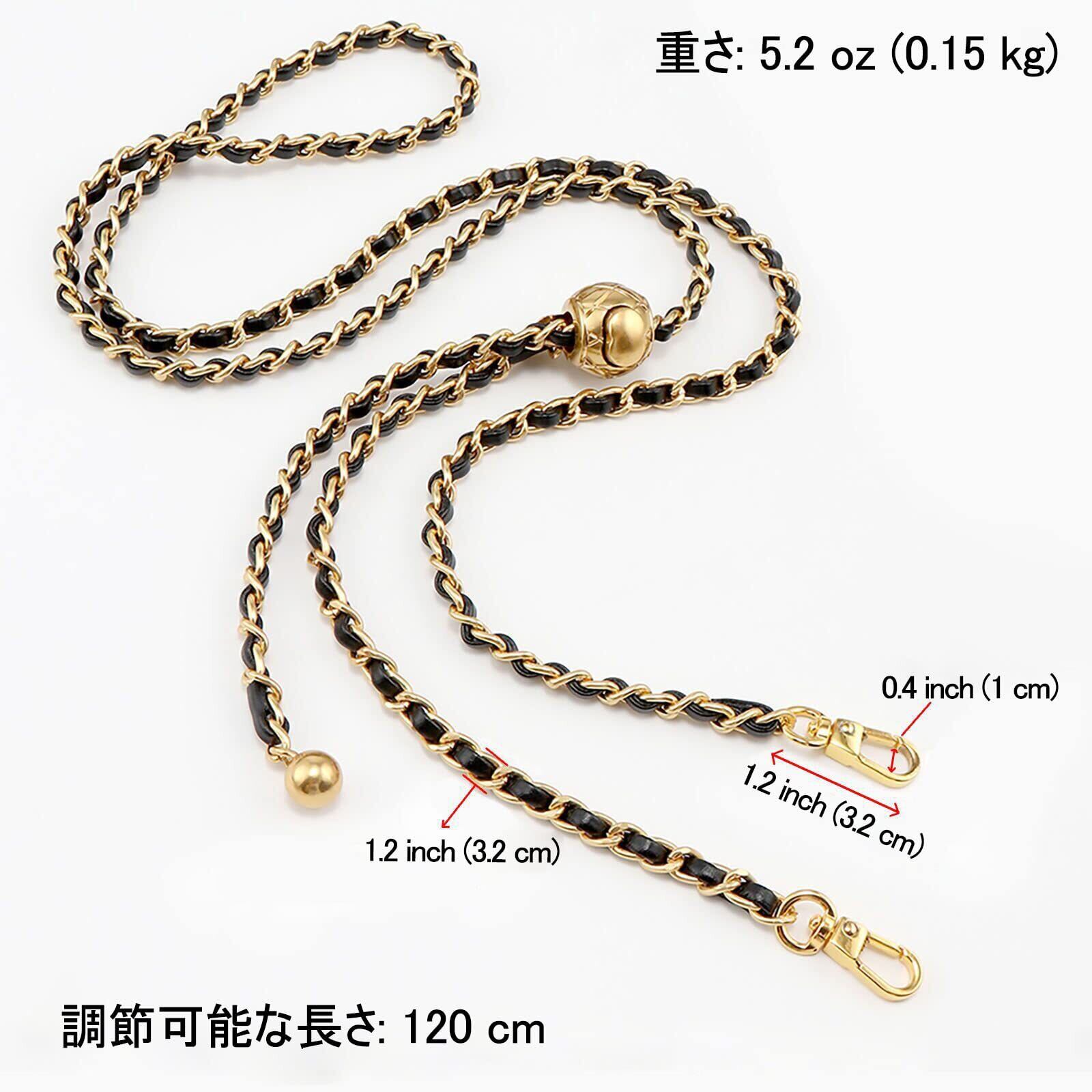 【特価セール】[BEAULEGAN] 調整可能 薄い チェーン ストラップ ショルダー クロスボディバッグ用 付け替え 120 CM (白/金)