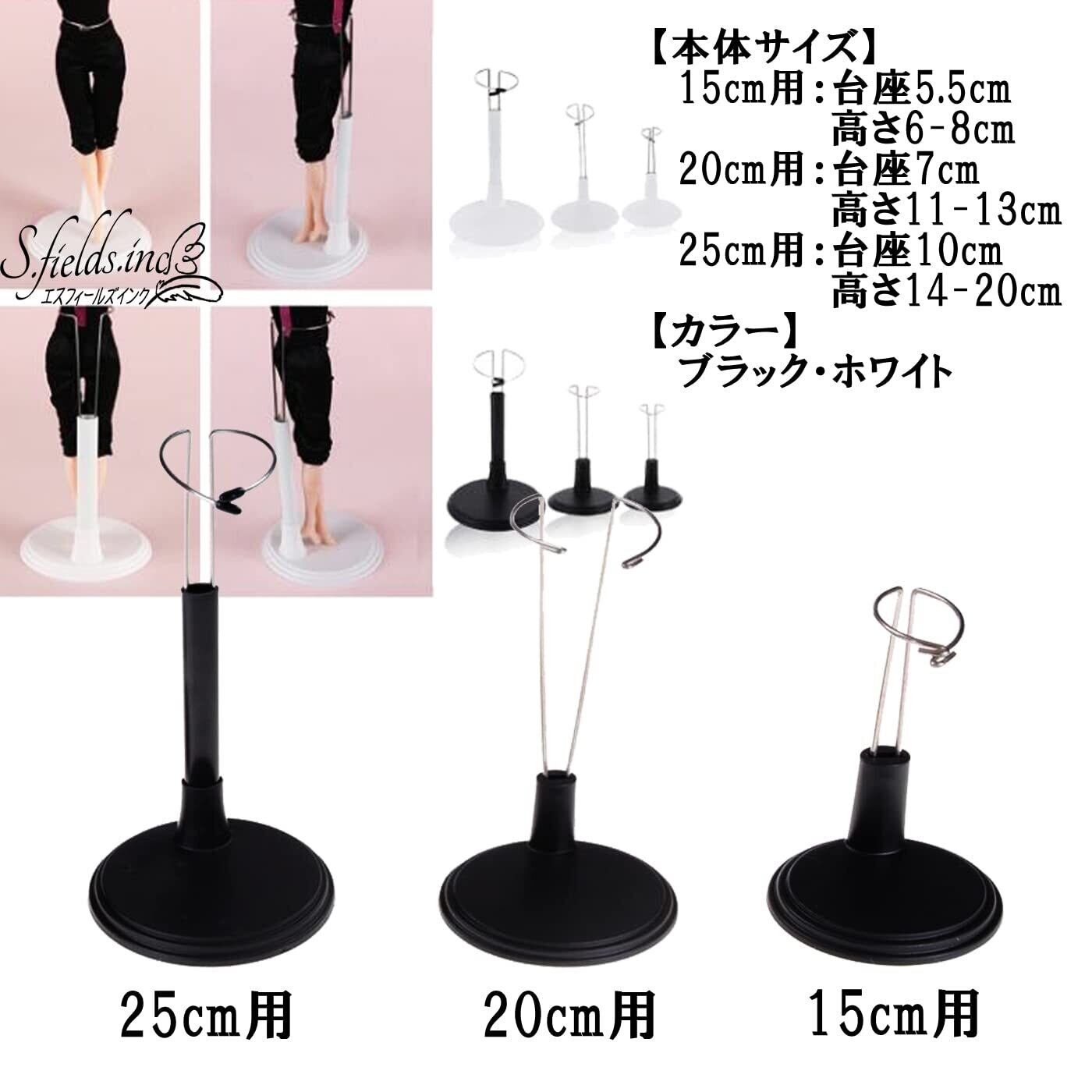 【本体サイズ】15cm用:台座5.5cm 高さ6-8cm 20cm用:台座7cm 高さ11-13cm 25cm用:台座10cm 高さ14-20cm 【カラー】ブラック・ホワイト