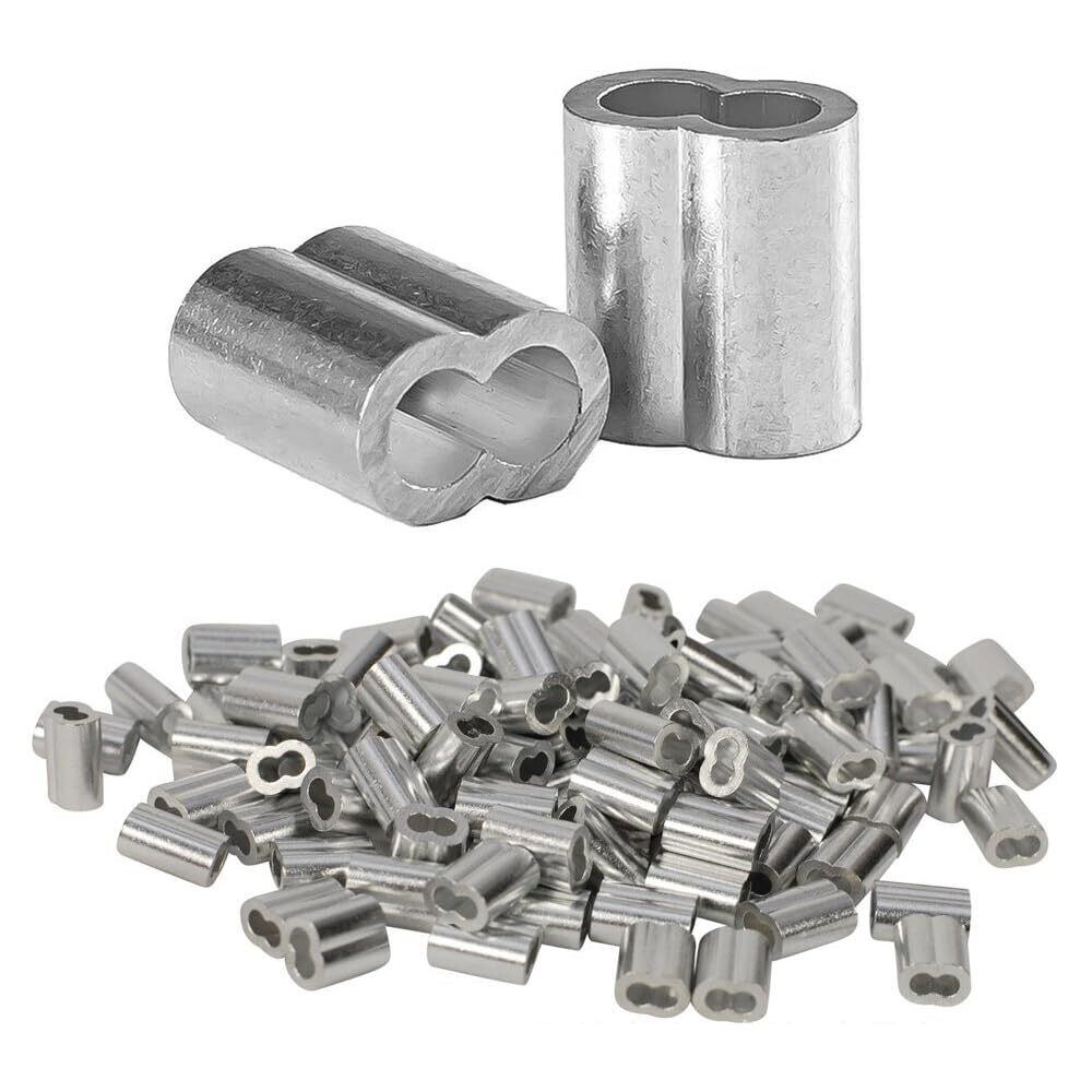 【数量限定】ワイヤーロープスリーブ 100個セット 1mm/1.5mm/2mm/3mm/4mm アルミスリーブ 8字型 アルミ合金製 スリーブ アルミクランプ管 アルミクリンプループ かしめ機で固定 (1mm) | めめるんSHOP
