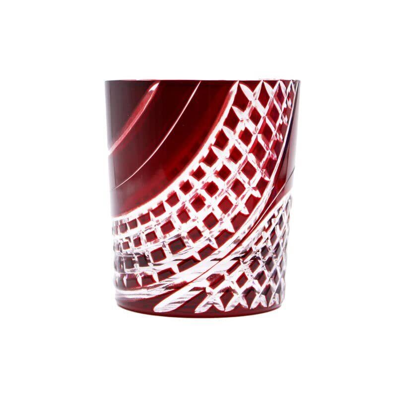 切子 切り子 酒器 グラス ロック タンブラー ぐい呑み (レッド)