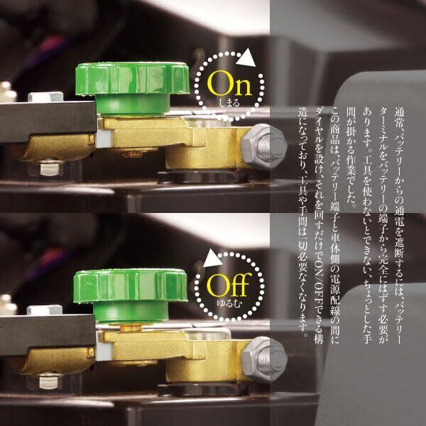 ️【製品情報】バッテリーカットターミナルは、頑丈な真鍮合金と強力な耐食性がある亜鉛合金端子で作られます。車両またはボートが使用されていないときにバッテリーからの電力供給を排除して、バッテリーを安全に切断します。長時間愛車に乗らない場合に、運転距離が短い場合に、それともバッテリーが完全に充電できない場合には、弊店のこの商品を持っていると、安心できます。