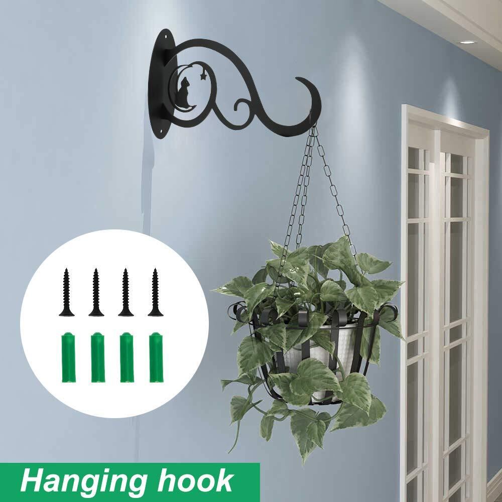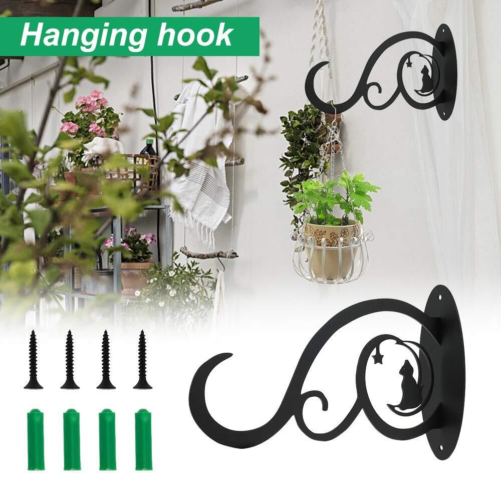 ハンギング アンティーク ブラック アイアンブラケット 壁面用フック 屋内外 ガーデンブラケット ぶら下げ植物ブラケット 吊り下げ アンティーク調 庭用植物用ブラケット プランター 壁掛け用ブラケット 鉢植 防錆ブラケット 屋内外 2個セット ブラック (C)
