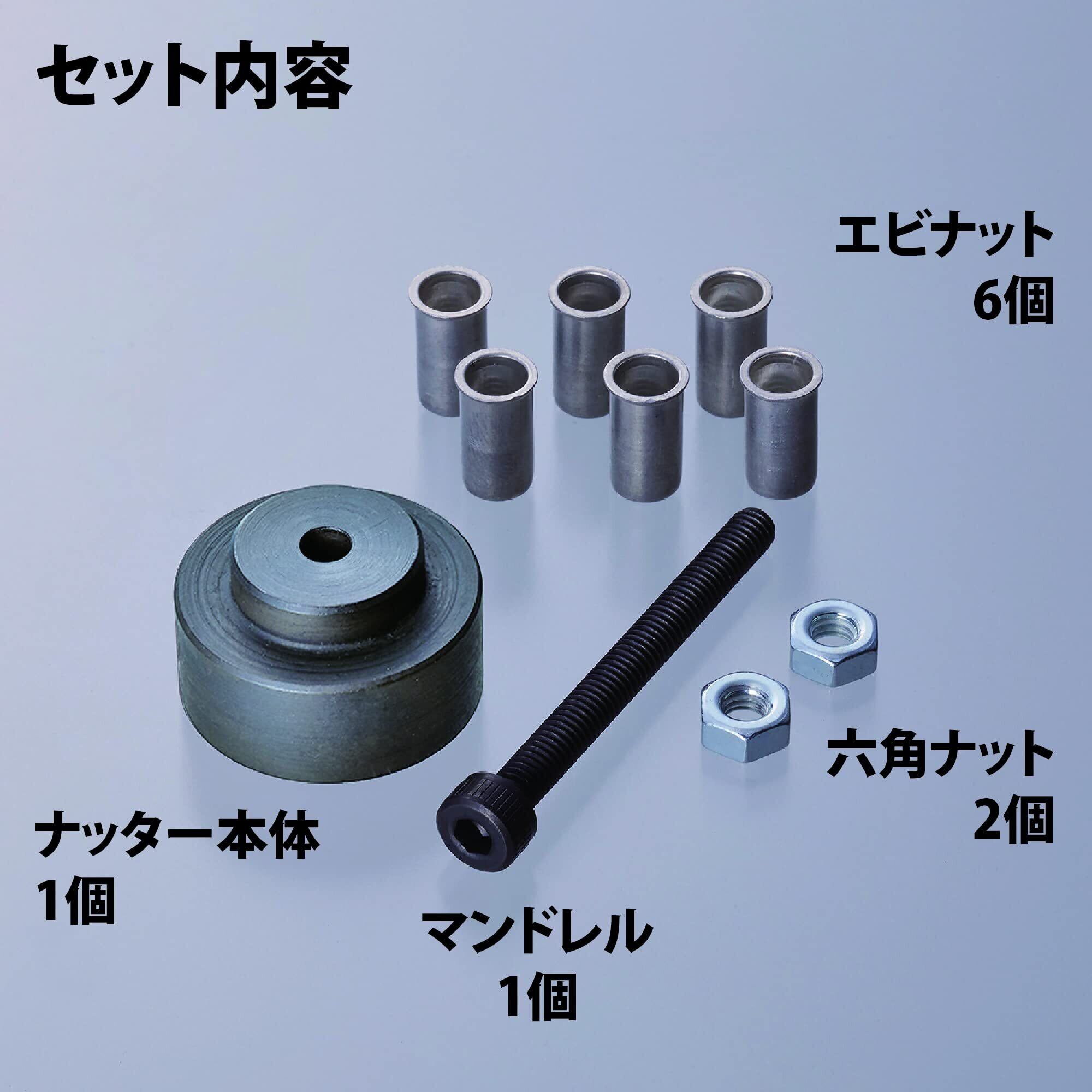 内容:マンドレル1本/六角ナット2個/エビナット6個/ナッター本体