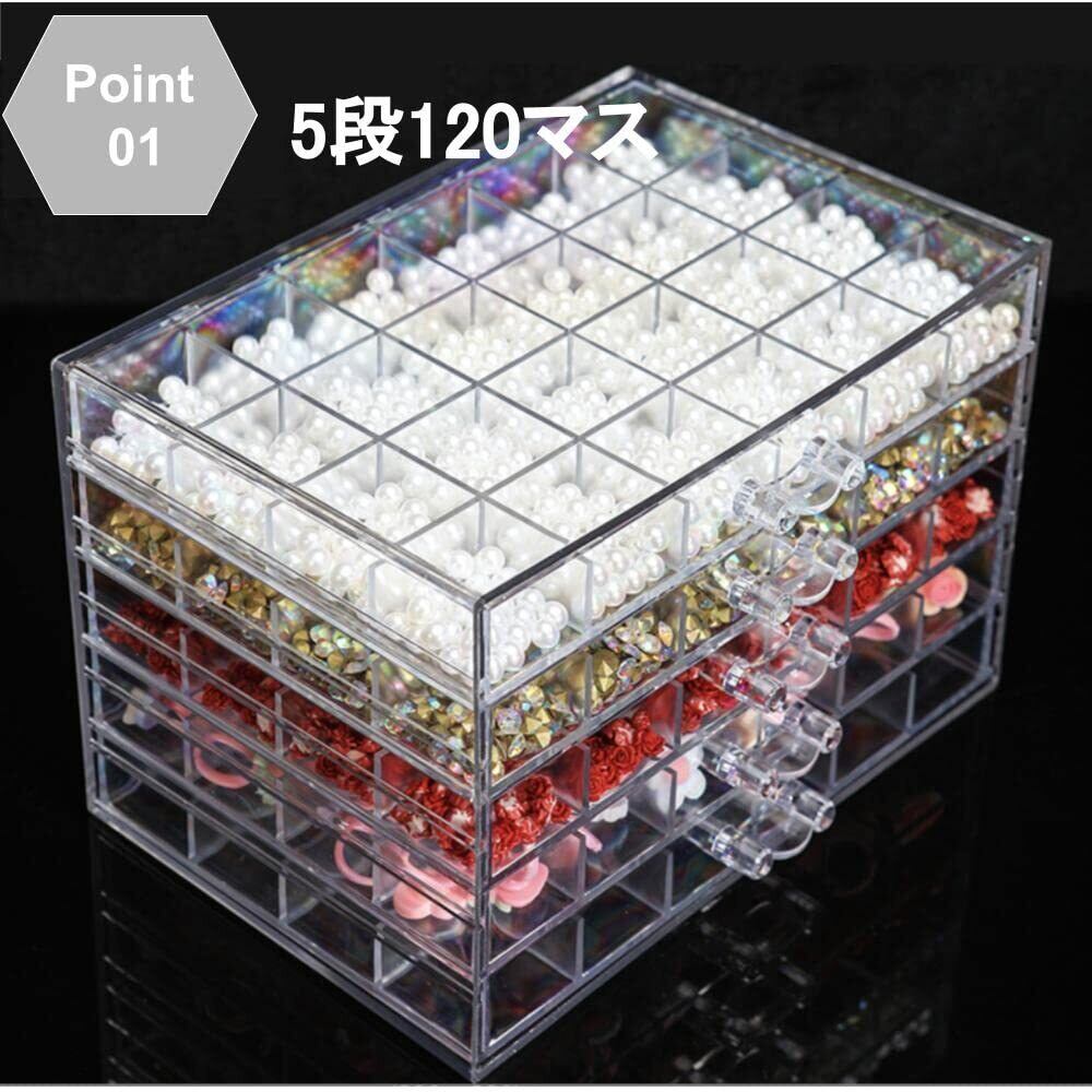 Chocople ビーズキャビネット アクセサリーケース ネイル収納ケース 小物入れ 透明 アクリル (5段120マス)