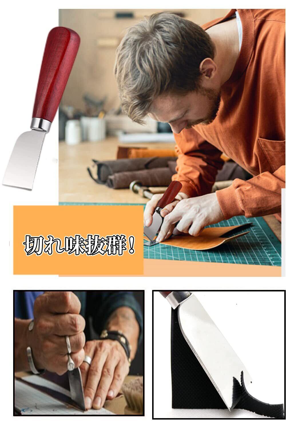 【优点】上質の皮裁ちで革細工の職人さん用に制作されております。切れ味抜群のレザークラフト用革切包丁です。