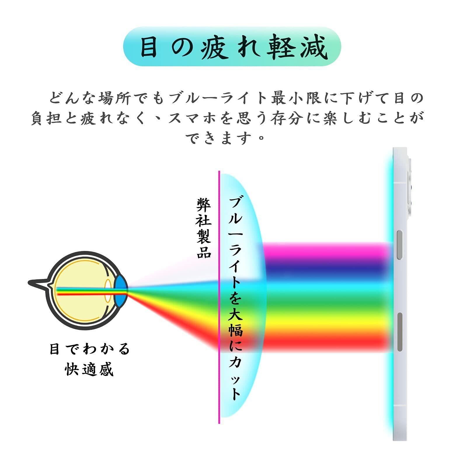 ブルーライトカットタイプはその特性としてクリアタイプと比較して屋外では紫色の反射、画面のカラーは黄味がかった色となります。ガラスフィルム は先進ブルーライト カット反射技術によりブルーライトを大幅にカットでき、ブルーライトから目を守り、目に掛かる負担を軽減し、近視を予防でき、ディスプレイを長時間眺めても疲れません。