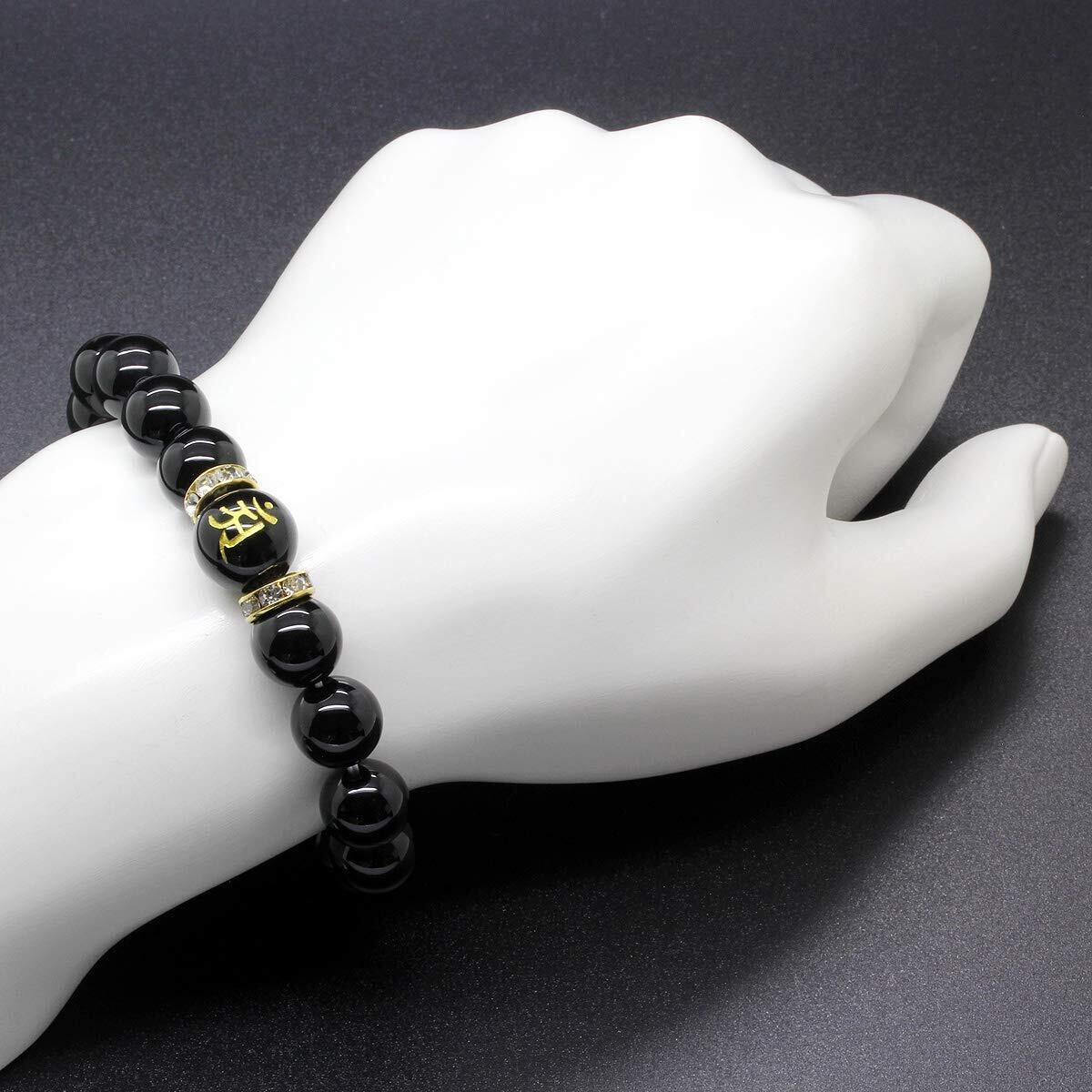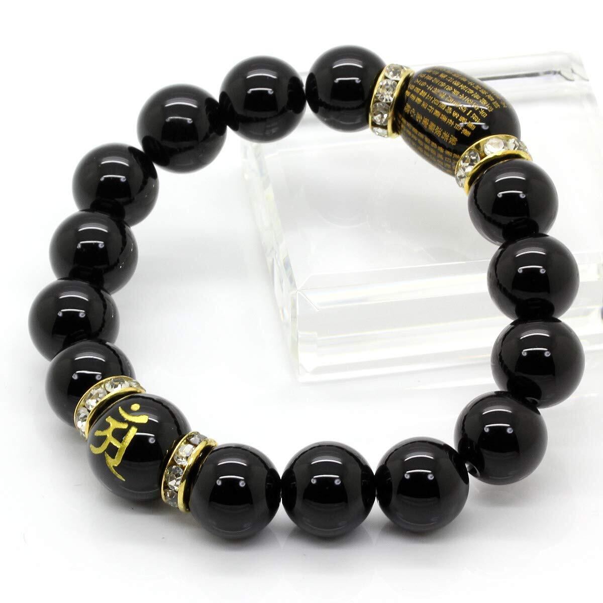 【数量限定】[石輝] 梵字 オニキス 14mm 般若心経入り ブレスレット メンズ パワーストーン 数珠 [b626]