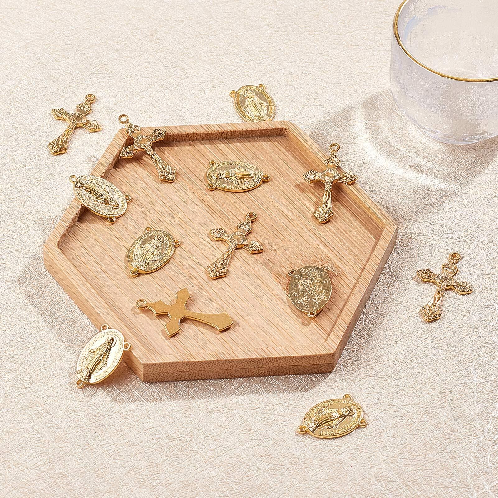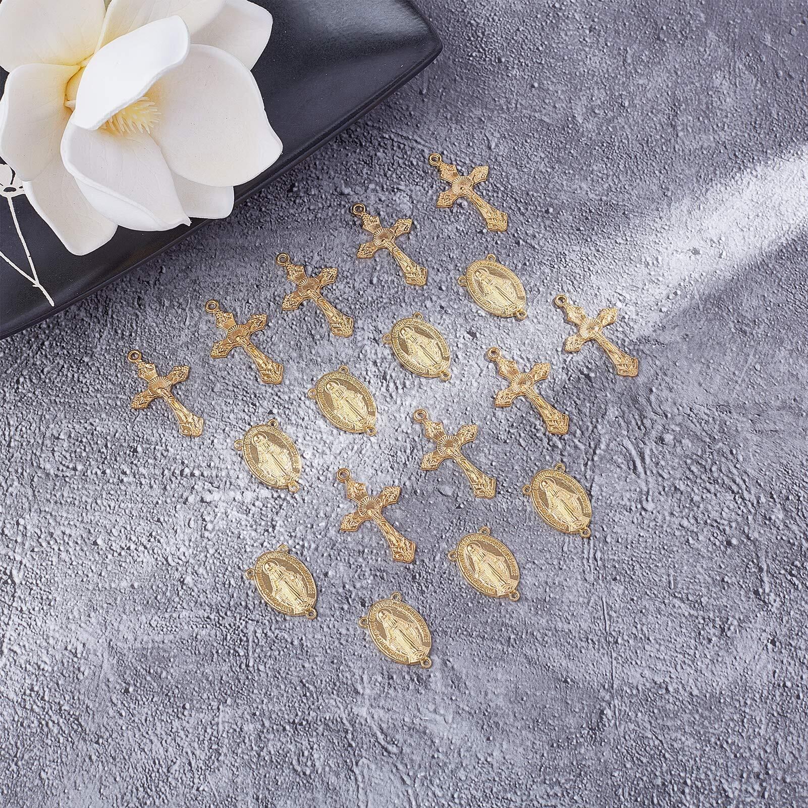 SUNNYCLUE 40個2種 チャーム クロス ペンダント 十字架 パーツ ロザリオクロス ピアス ロザリオ十字架 イヤリング 合金十字架 ネックレス クロス 聖母 ブレスレット ロザリオセンター コネクターパーツ シャンデリア ペンダント メタルパーツ チベット風 アンチック ヴィンテージ 金古美 基礎パーツ 飾り物 ジュエリー作り レディース デコキット クラフト手芸 手作りキット DIY飾り物