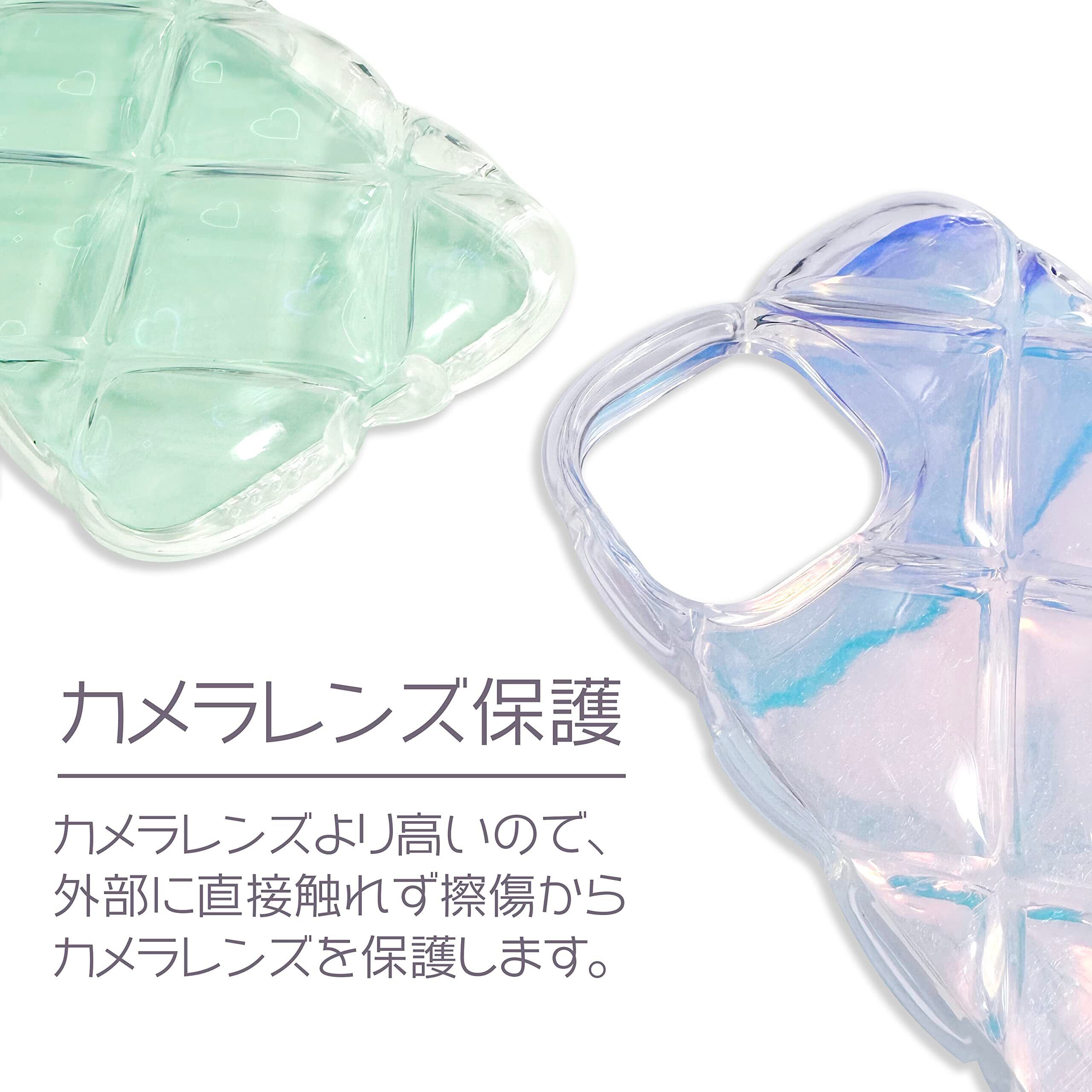 【保護性能UP】透明で設計されたアクアキルティングはアイホンのデザインをよりかわいく演出します。ケースカメラ部分にはカメラレンズより高く、カメラレンズの周りを保護し、レンズの傷つきを防止できます。
