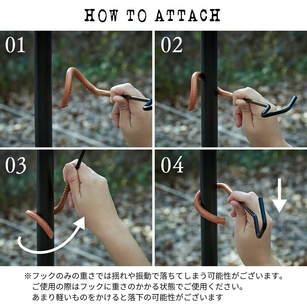 無骨なブラックアイアンにレザーを組み合わせた、上質感のあるランタンフック。贅沢にベジタブルタンニンで鞣したヌメ革を使用しており、革のエイジングを存分に楽しんでいただけるモデルです。