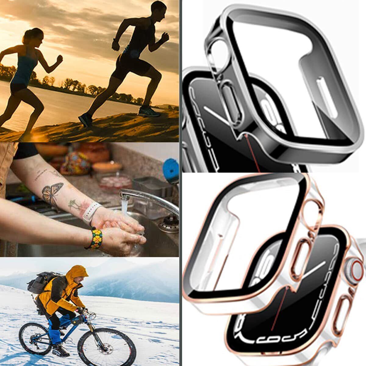 アップルウォッチケース 38mm 40mm 41mm 42mm 44mm 45mm Apple Watch用カバー 防水強化 ガラスフィルム一体型 Series 7 SE 6 5 4 3 シリーズに全面保護