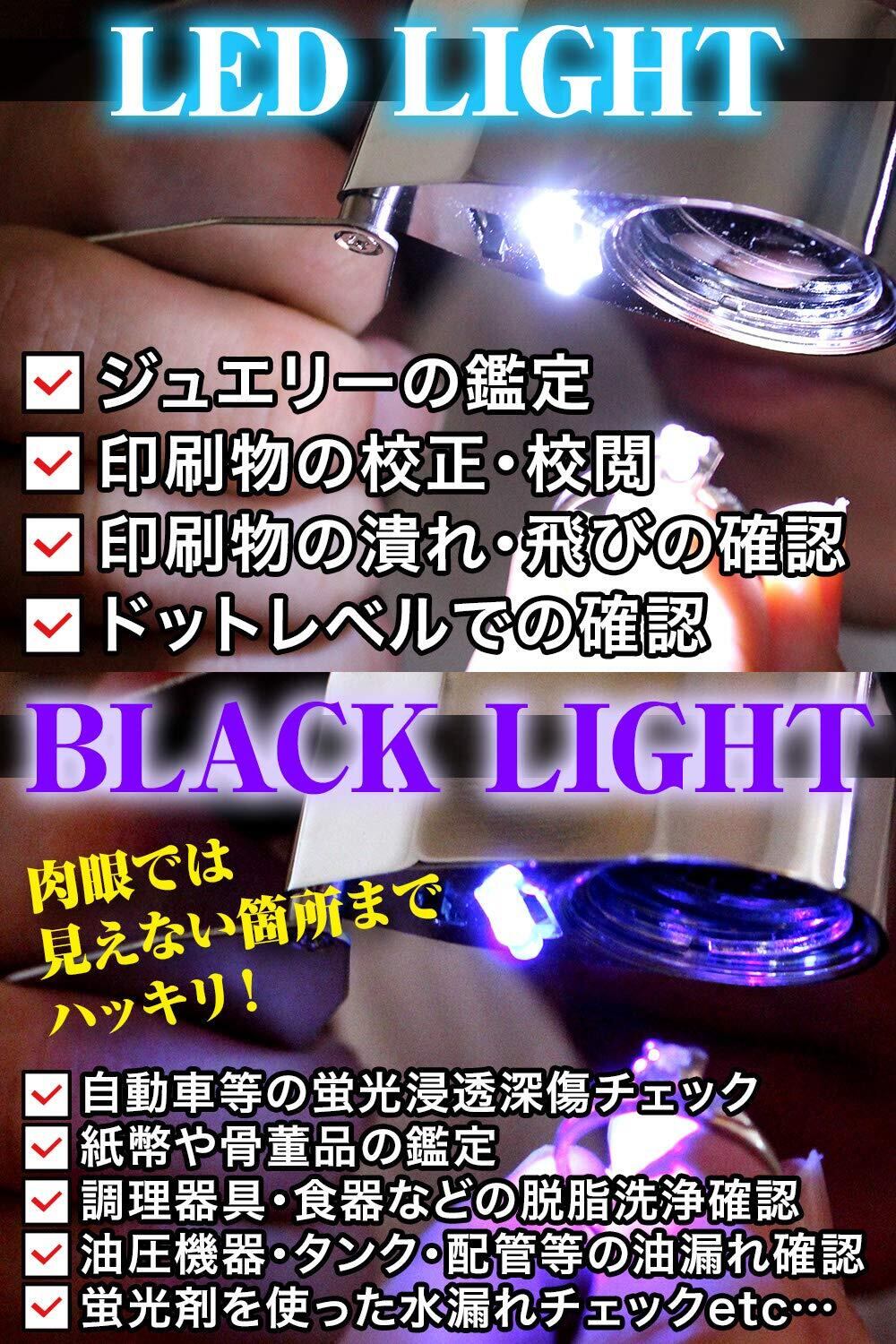 【LED&ブラックライト搭載】倍率が低くて見えにくい、細かくて見えづらい、手元が暗い・・・etcこんな時にオススメです!LED&ブラックライトを搭載で細かいところもクッキリ見える!LEDライトで暗いところでも明るくハッキリ点灯