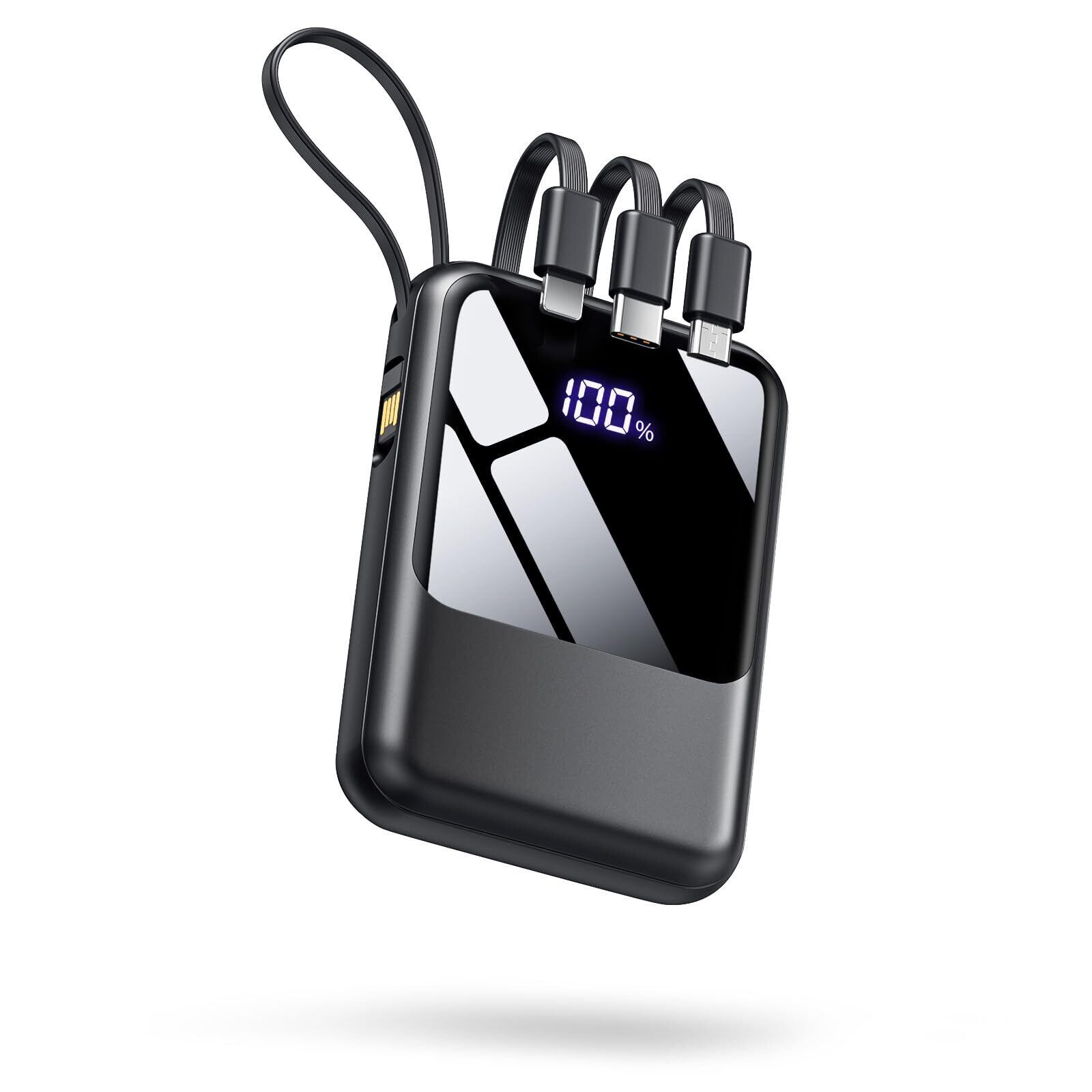 【急速充電可能なポート・4種類ケーブル内蔵】最大2.1Aで急速充電可能USB-A出力ポートを搭載することで、通常の5W出力に比べ3倍以上の速度で充電することができ、30分で約50%まで充電することができます。USB-A出力ポートと三つの出力ケーブルを内蔵されており、最大4台のデバイスの同時充電が可能、コンセントのない場所でも手軽に充電できるため、安心して出かけることが可能。【1%刻みで残量を表示するディスプレイを搭載】バッテリー残量が具体的な数字表示というところが決めた!あいまいな点滅ランプとは違い、新常識なLED(light-emitting diode)表示設計により、バッテリー残量と急速充電状態が一目瞭然できますので、充電のタイミングがより掴みやすく、充電切れの心配もありません。