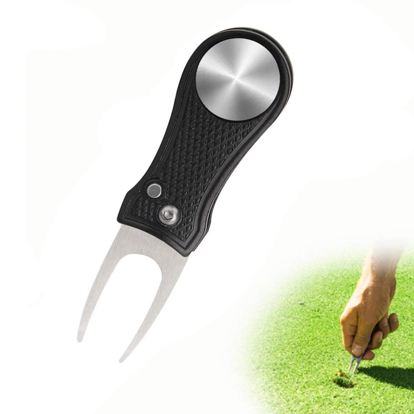 YFFSFDC ゴルフフォーク 折りたたみ式 ゴルフ フォーク 修理 フォーク 持ち運び便利 亜鉛合金 ゴルフ 用品 アクセサリー 贈り物 1個入り (ブラック 丸柄フォーク)