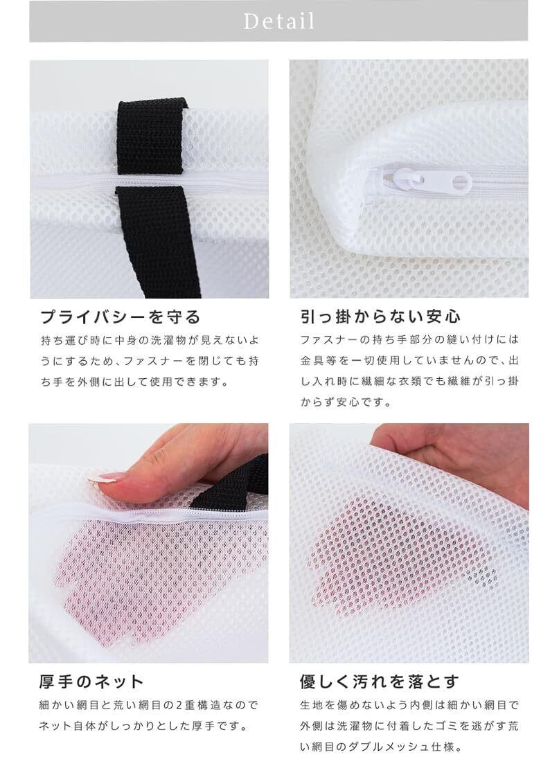 メッシュ生地は中身の洗濯物が見えにくいダブルメッシュ仕様で外出にも使用できます。