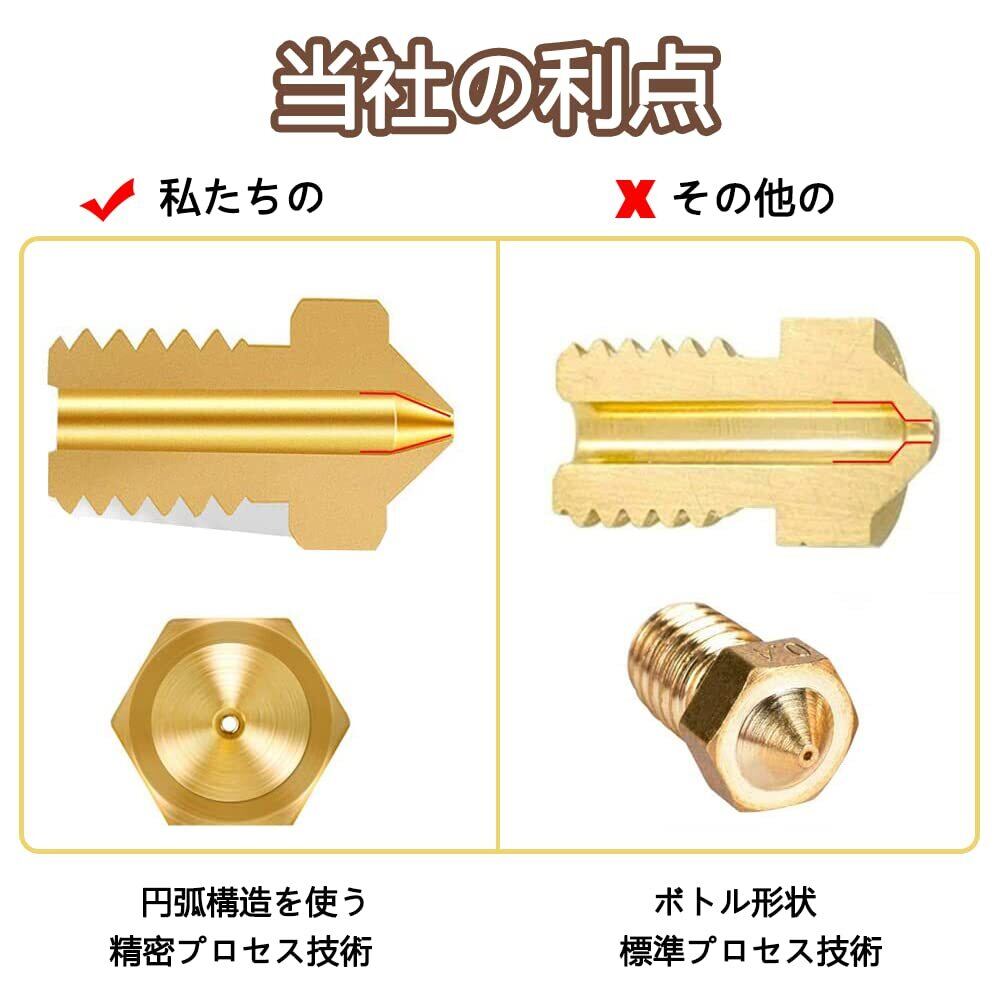 【商品詳細】10個セット、ネジ:M6、入口直径2.00mm、ノズル径:0.4mm、ノズル直径サイズは表面に刻まれているので易くに認識できます。1.75mmフィラメントV5 V6 3Dプリンターと互換性があります。