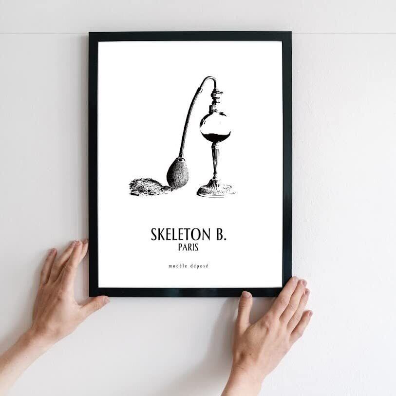 フランス パリの高級香水瓶づくりスタジオとして知られるマルセル・フランクが1950年代に制作したポンプ式のラグジュアリー・フレグランス・アトマイザー(タッセル付き)を SKELETON B. が繊細に描いたアートポスターの正規品です。(A4サイズ:フレーム付き)