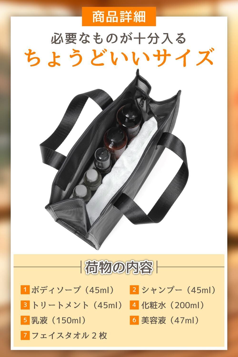 【ちょうどいいサイズ】コンパクトで、持ち運びに最適サイズのスパバッグ(温泉バッグ)です。シャンプーセット、スキンケア用品、アメニティなどを「ひとまとめ」にして持ち運びできます。