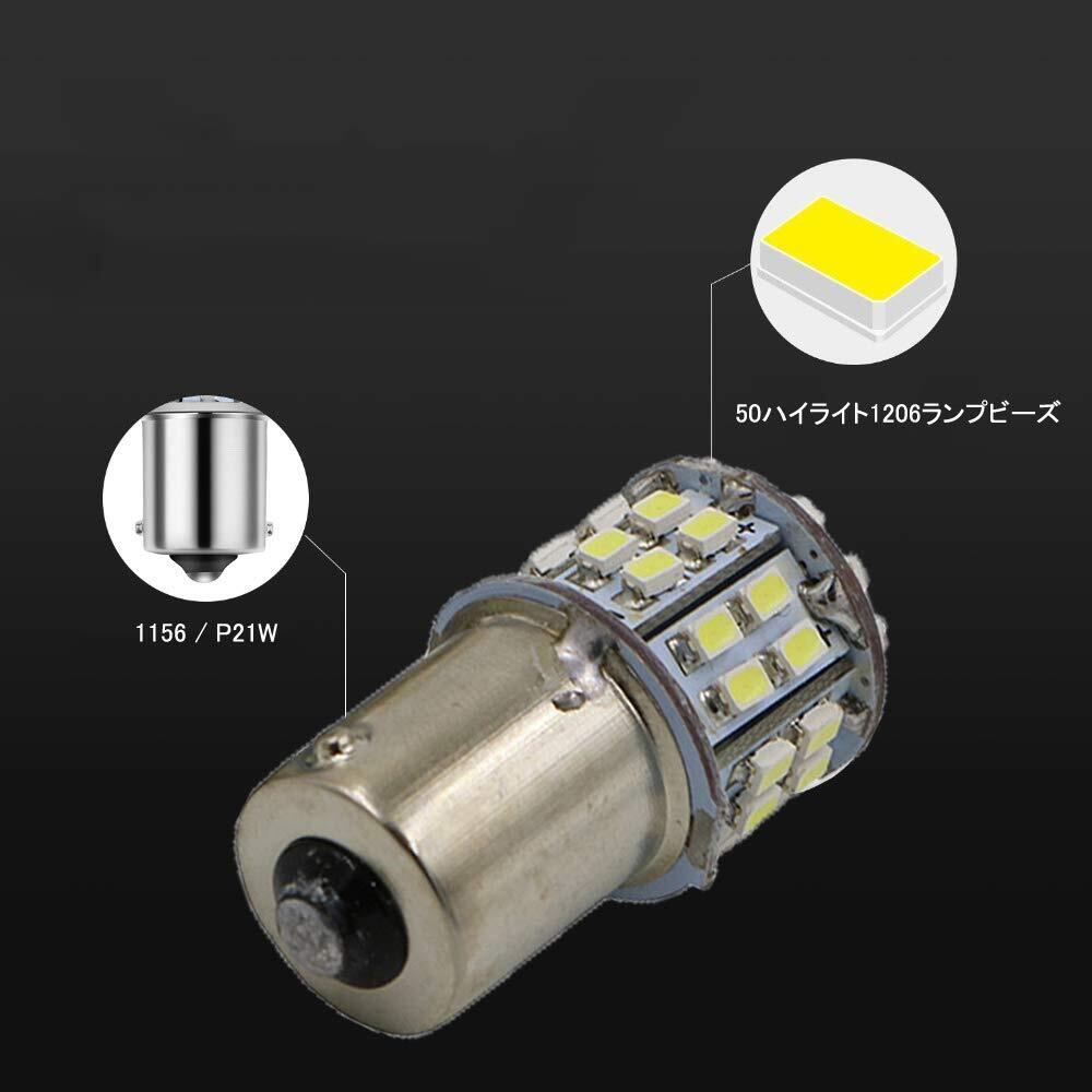 S25 シングル球 LED(P21W 1156 S25 G18 BA15S)バックランプ 1206SMD 50連 ホワイト ピン角180度 6000-6500K 12V車用 10個入り