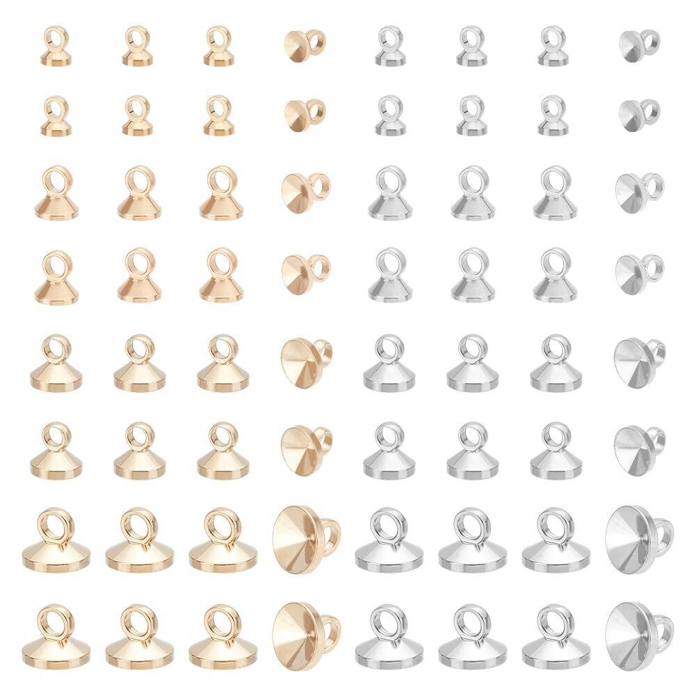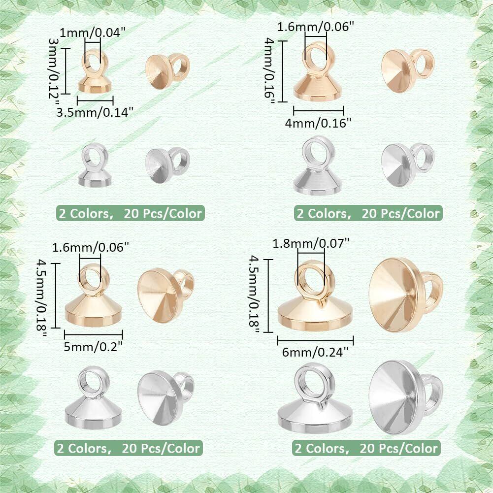 PH PandaHall 約160個セット ヒートン ヒートンキャップ ビーズキャップ 2色 4サイズ ピンなし カン付き イヤリングパーツ レジンアクセサリー 丸ヒートン 接合金具 アクセサリーパーツ チャーム取付カバー ペンダント接続金具 ハンドメイド 手芸用品