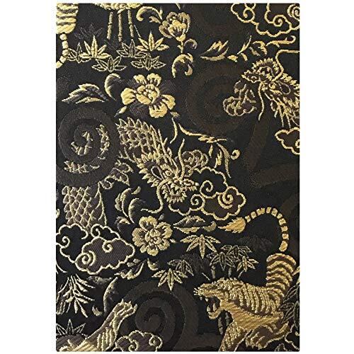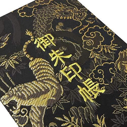 千糸繍院 御朱印帳XL【漆黒金龍虎】西陣織 金襴装丁/刺繍文字 蛇腹式48ページ 特大判 (金色刺繍文字/白色本文)