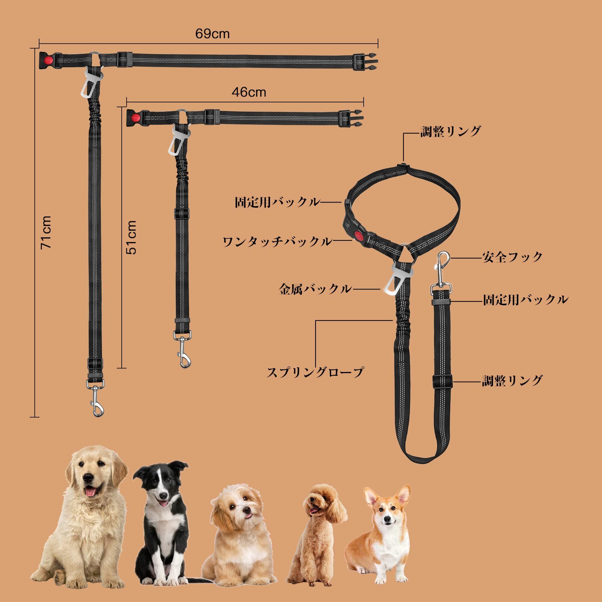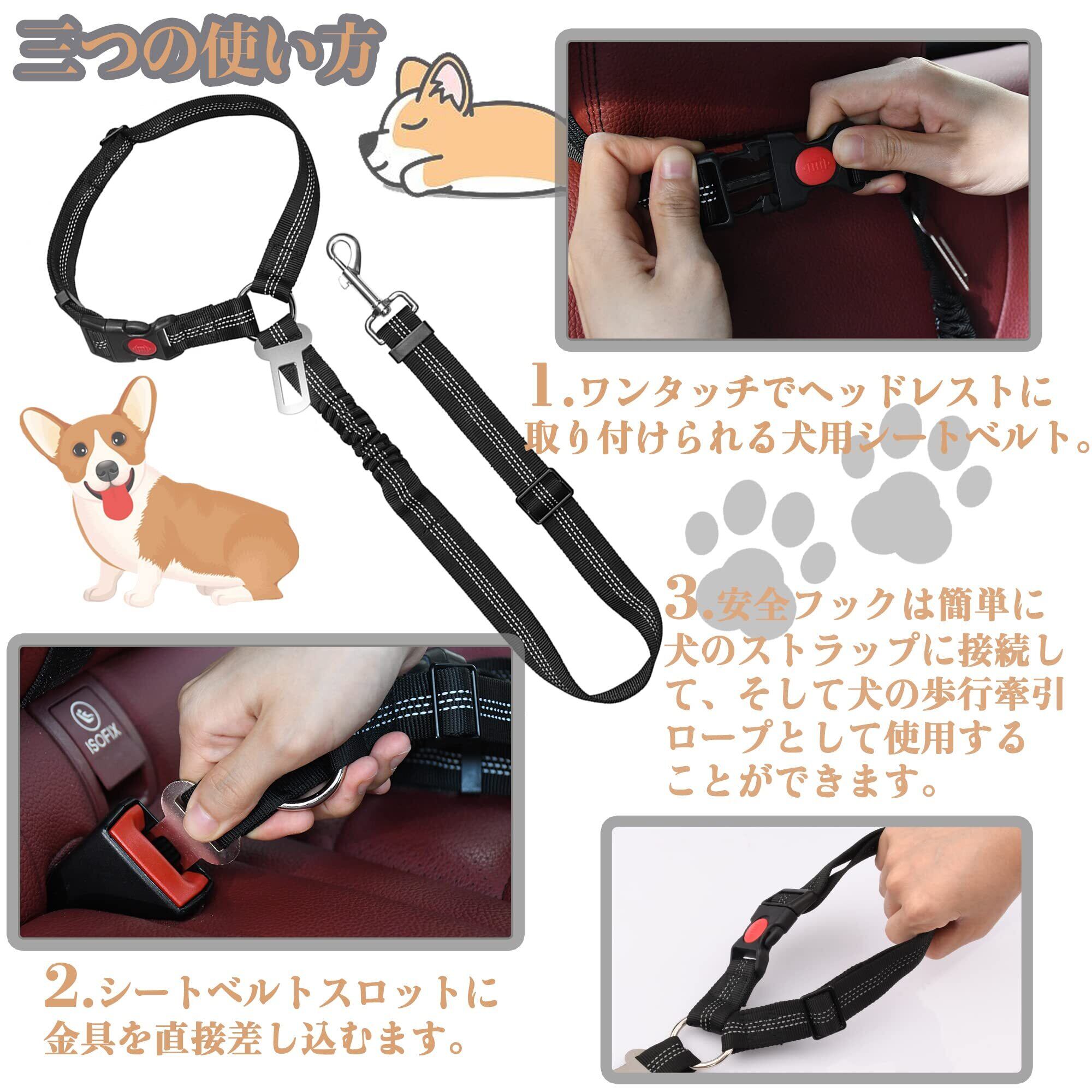 Yullmu NEW犬用 シートベルト ドライブ 車専用リード 安全ベルト ペット用 ヘッドレスト 簡単装着 飛び出し防止 長さ調節